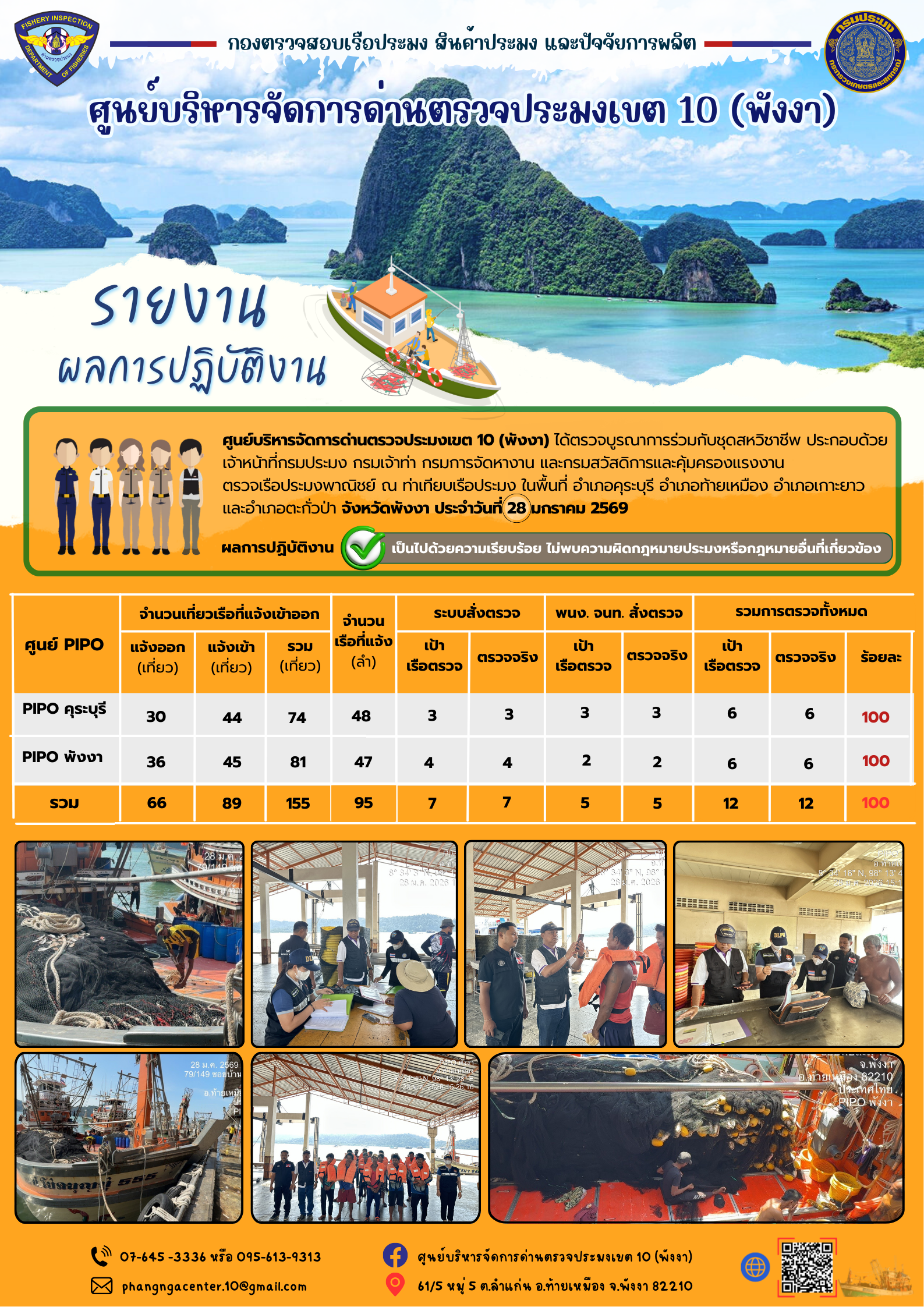ข่าวประชาสัมพันธ์กิจกรรมการตรวจเรือประมงพาณิชย์แจ้งเข้า - ออก วันที่ 28 มกราคม 2569