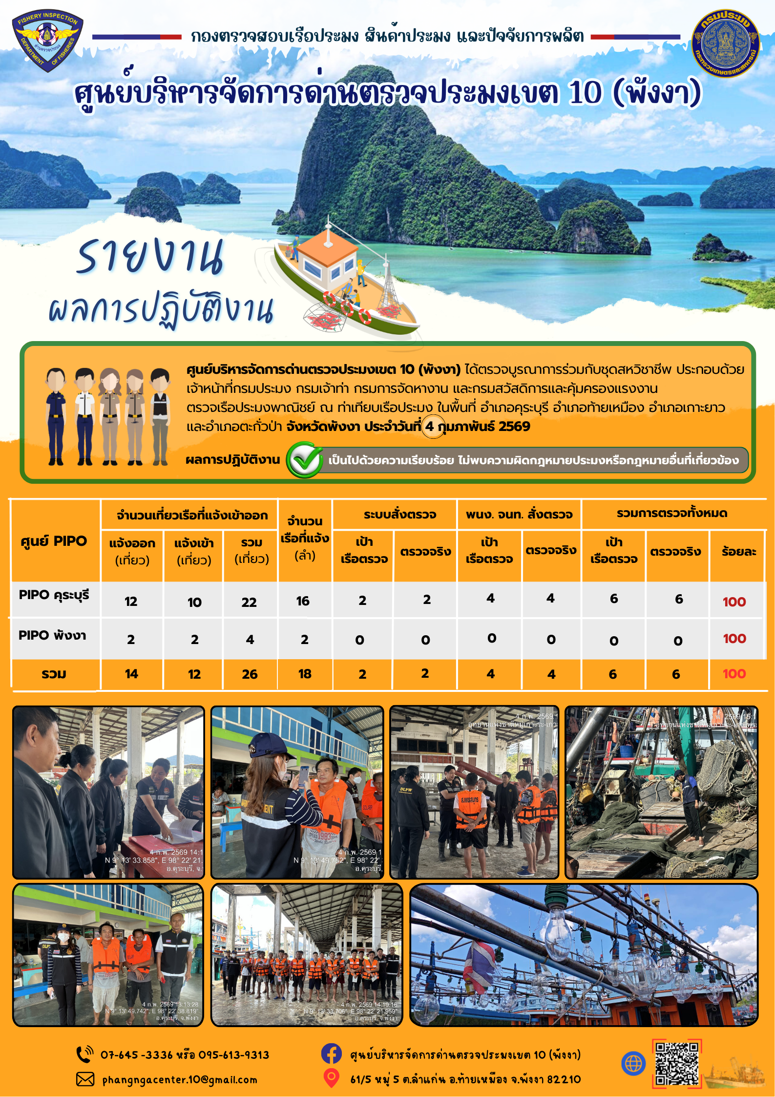 ข่าวประชาสัมพันธ์กิจกรรมการตรวจเรือประมงพาณิชย์แจ้งเข้า - ออก วันที่ 4 กุมภาพันธ์ 2569