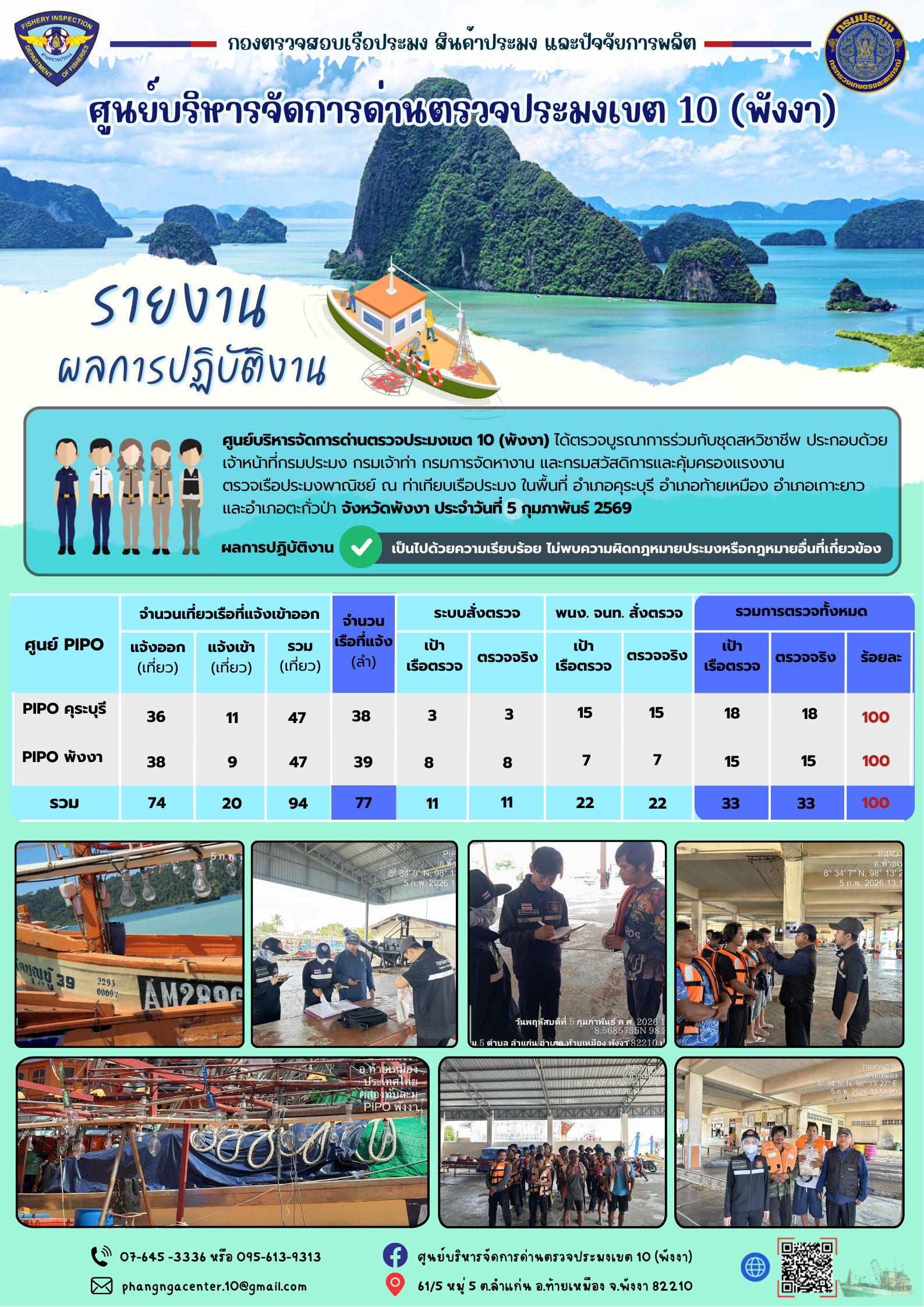 ข่าวประชาสัมพันธ์กิจกรรมการตรวจเรือประมงพาณิชย์แจ้งเข้า - ออก วันที่ 5 กุมภาพันธ์ 2569