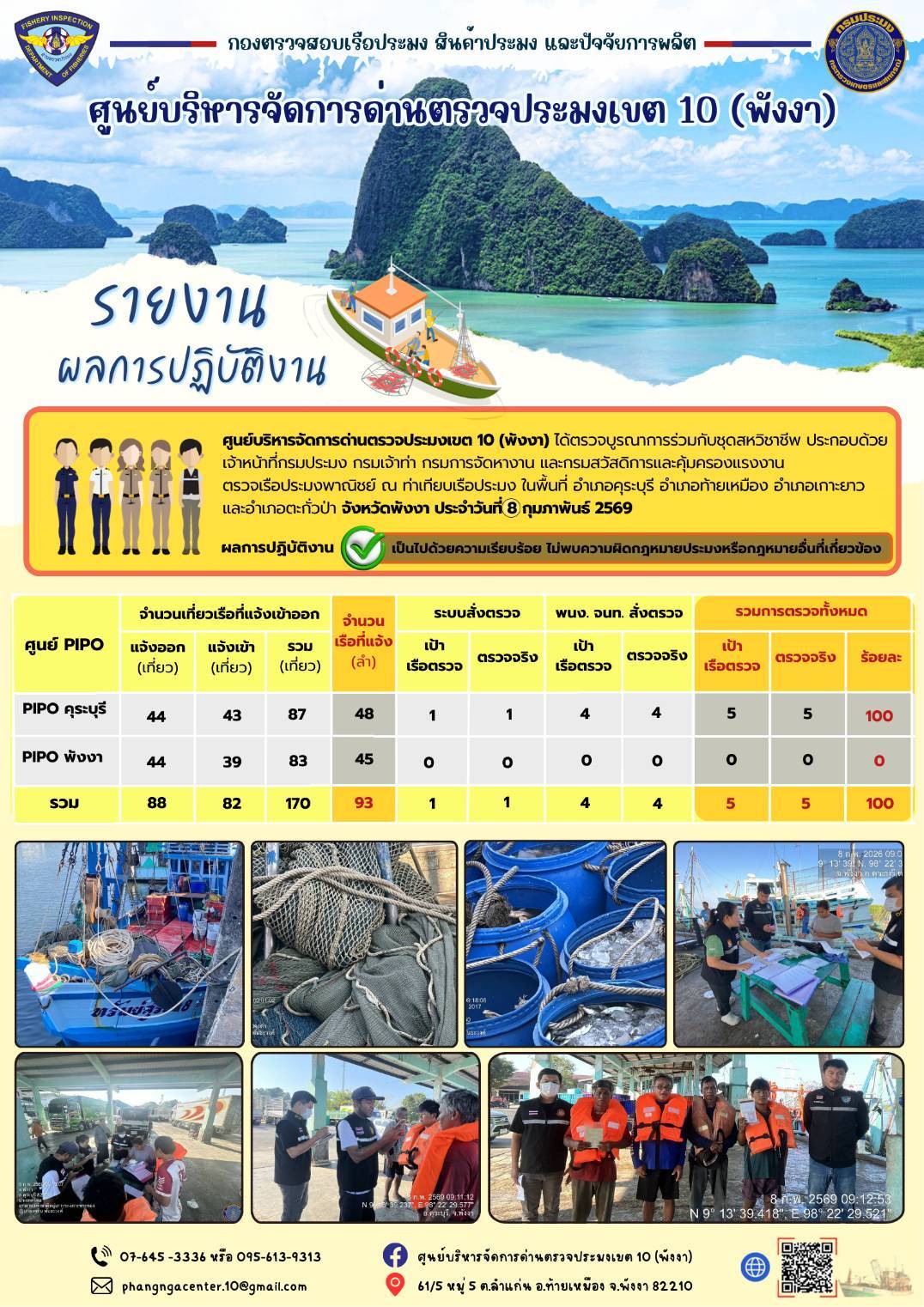 ข่าวประชาสัมพันธ์กิจกรรมการตรวจเรือประมงพาณิชย์แจ้งเข้า - ออก วันที่ 8 กุมภาพันธ์ 2569