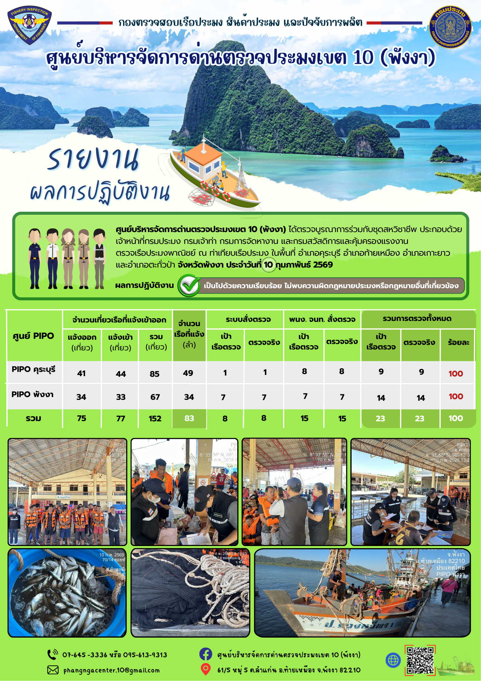 ข่าวประชาสัมพันธ์กิจกรรมการตรวจเรือประมงพาณิชย์แจ้งเข้า - ออก วันที่ 10 กุมภาพันธ์ 2569