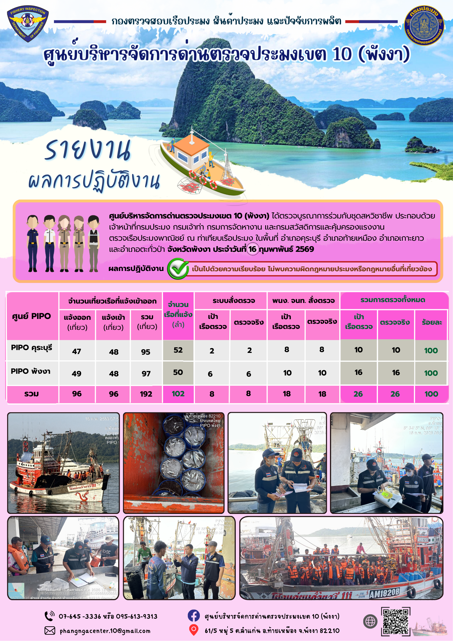 ข่าวประชาสัมพันธ์กิจกรรมการตรวจเรือประมงพาณิชย์แจ้งเข้า - ออก วันที่ 16 กุมภาพันธ์ 2569