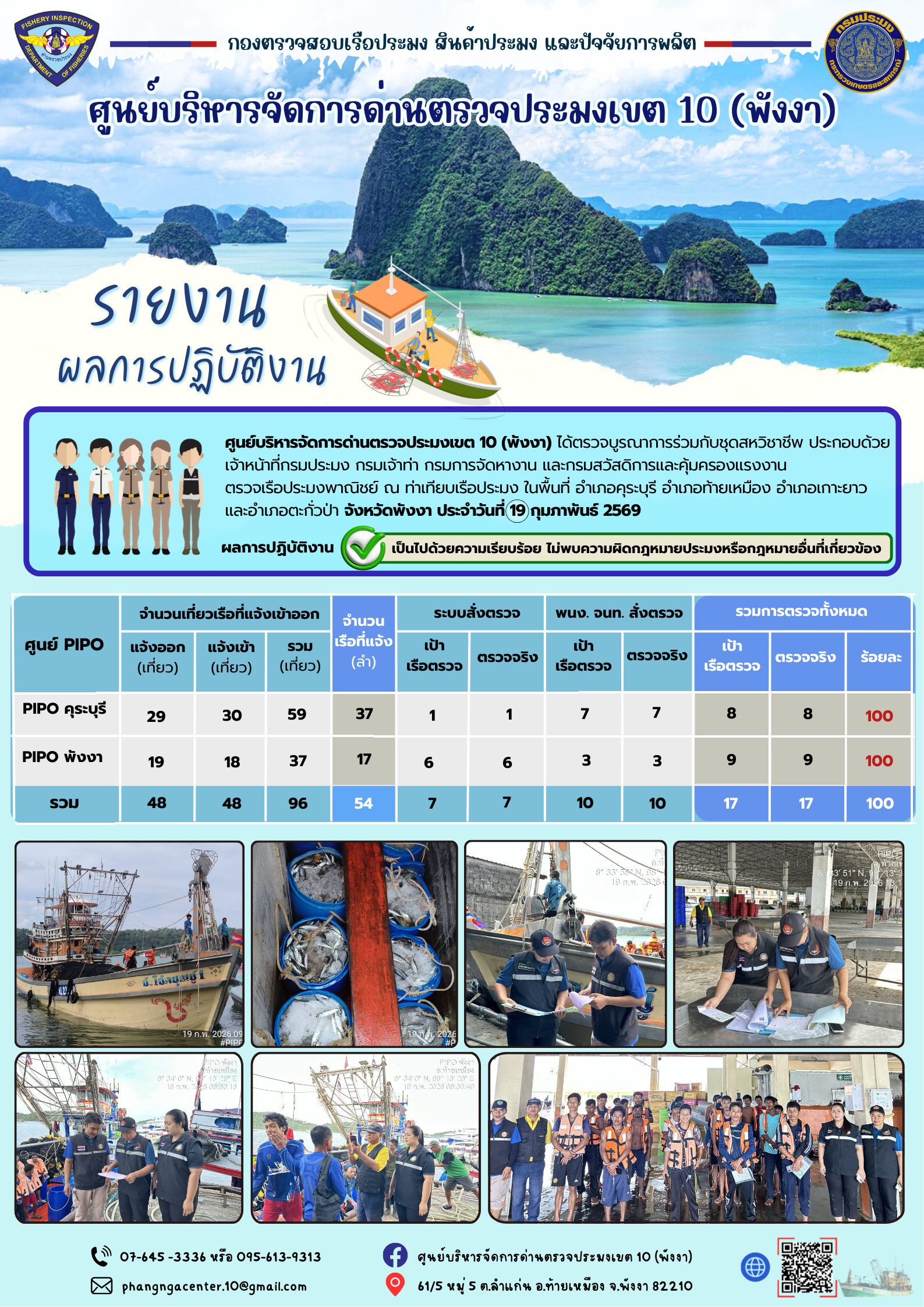ข่าวประชาสัมพันธ์กิจกรรมการตรวจเรือประมงพาณิชย์แจ้งเข้า - ออก วันที่ 19 กุมภาพันธ์ 2569
