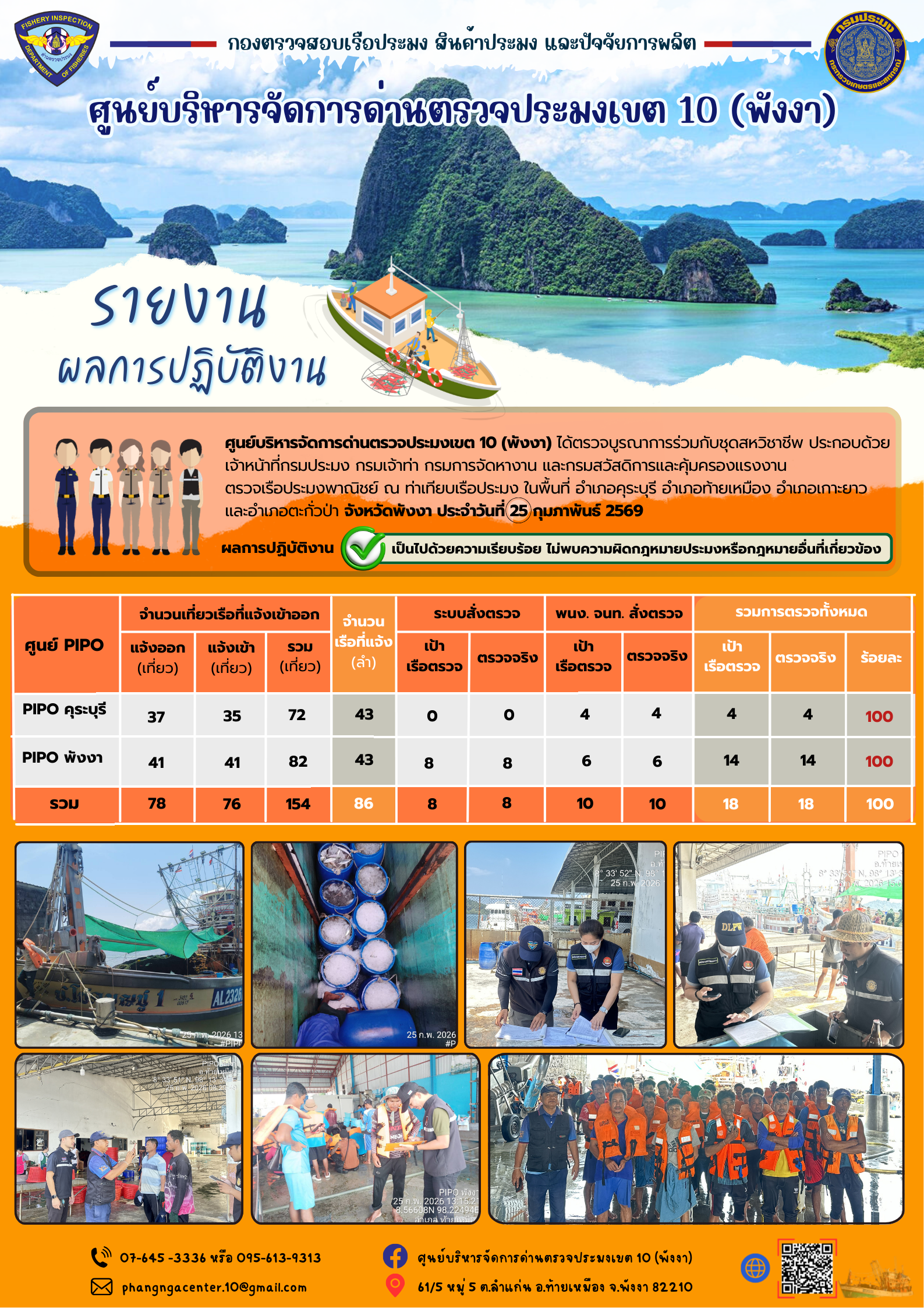 ข่าวประชาสัมพันธ์กิจกรรมการตรวจเรือประมงพาณิชย์แจ้งเข้า - ออก วันที่ 25 กุมภาพันธ์ 2569