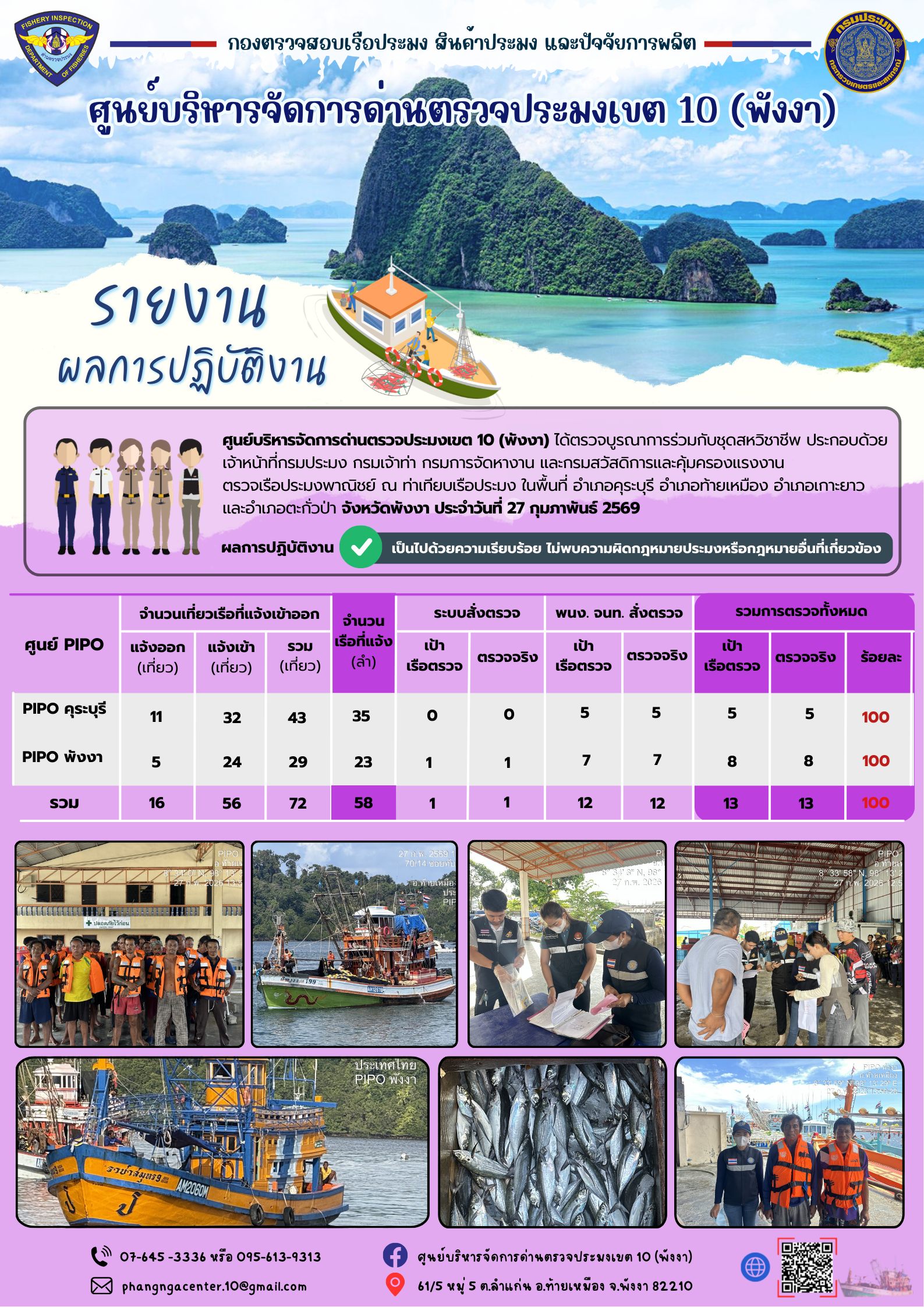 ข่าวประชาสัมพันธ์กิจกรรมการตรวจเรือประมงพาณิชย์แจ้งเข้า - ออก วันที่ 27 กุมภาพันธ์ 2569