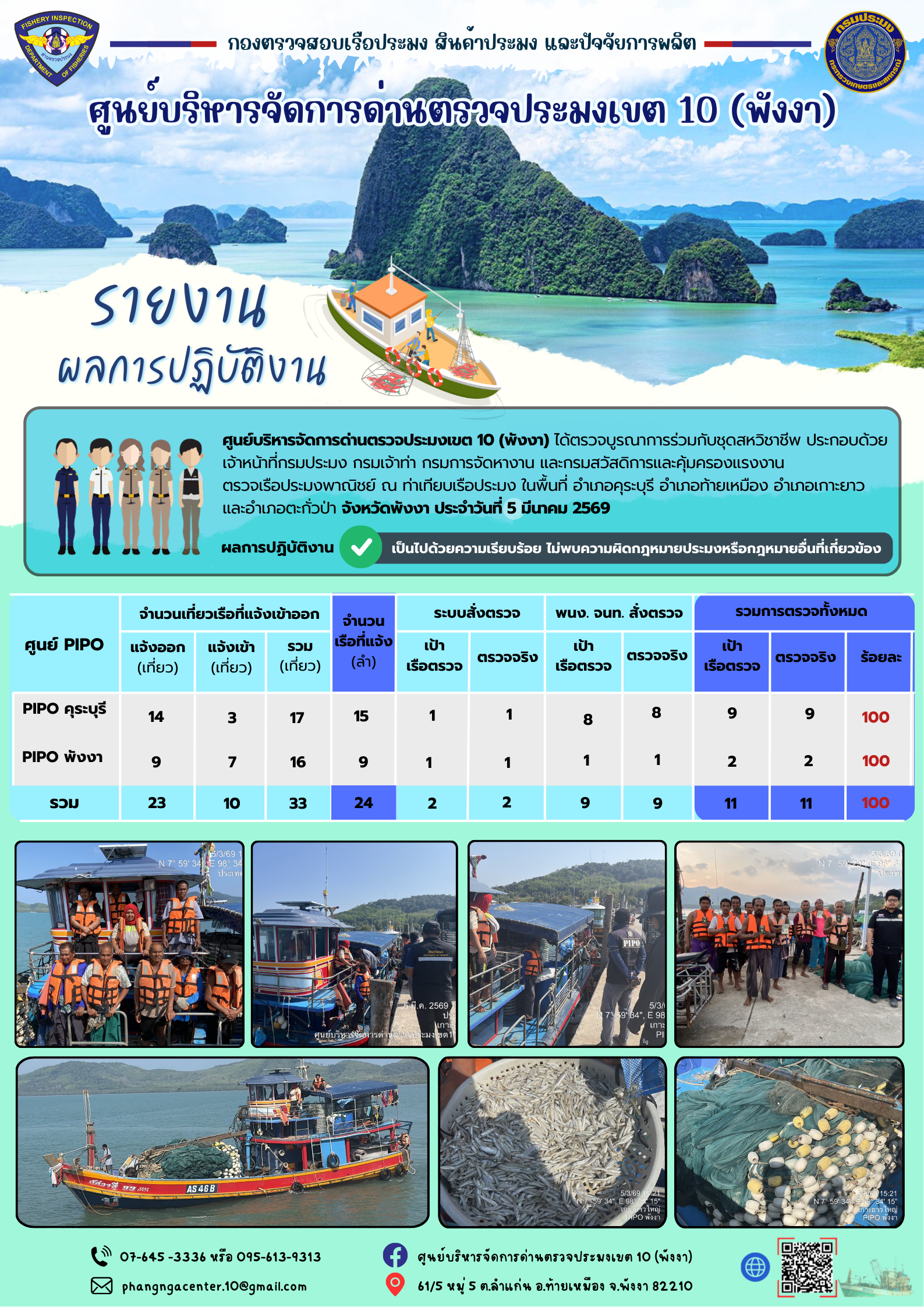ข่าวประชาสัมพันธ์กิจกรรมการตรวจเรือประมงพาณิชย์แจ้งเข้า - ออก วันที่ 05 มีนาคม 2569