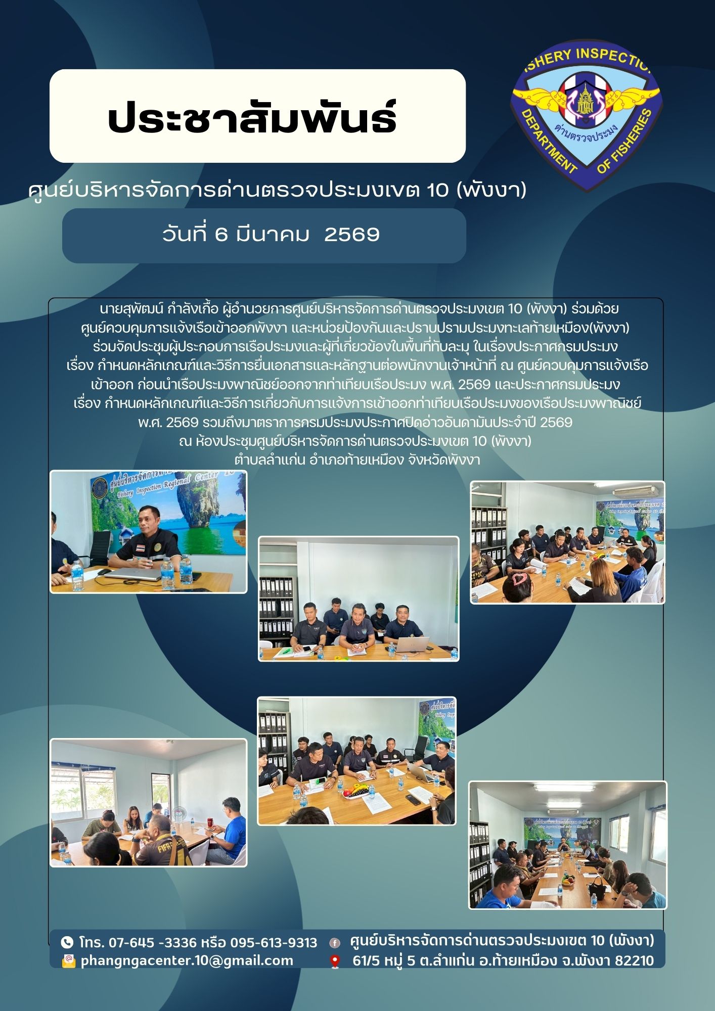 ประชุมผู้ประกอบการเรือประมงและผู้ที่เกี่ยวข้องในพื้นที่ทับละมุ ในเรื่องประกาศกรมประมง
