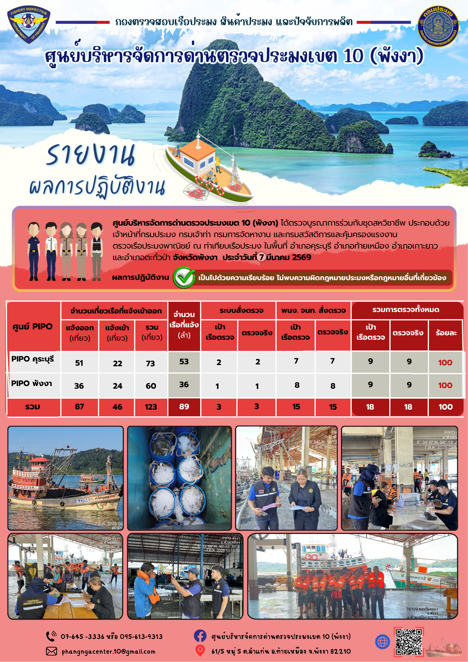 ข่าวประชาสัมพันธ์กิจกรรมการตรวจเรือประมงพาณิชย์แจ้งเข้า - ออก วันที่ 07 มีนาคม 2569