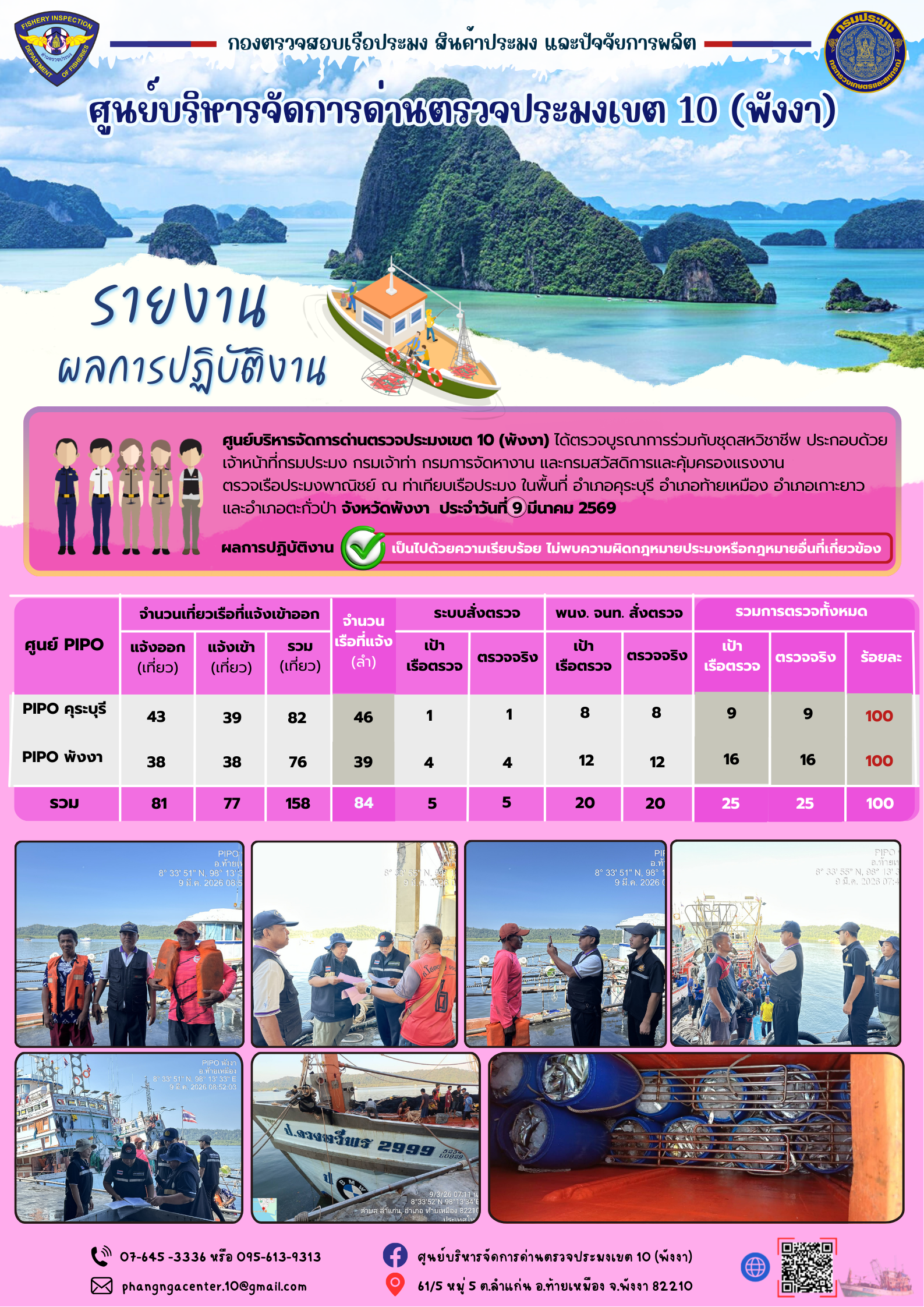 ข่าวประชาสัมพันธ์กิจกรรมการตรวจเรือประมงพาณิชย์แจ้งเข้า - ออก วันที่ 09 มีนาคม 2569