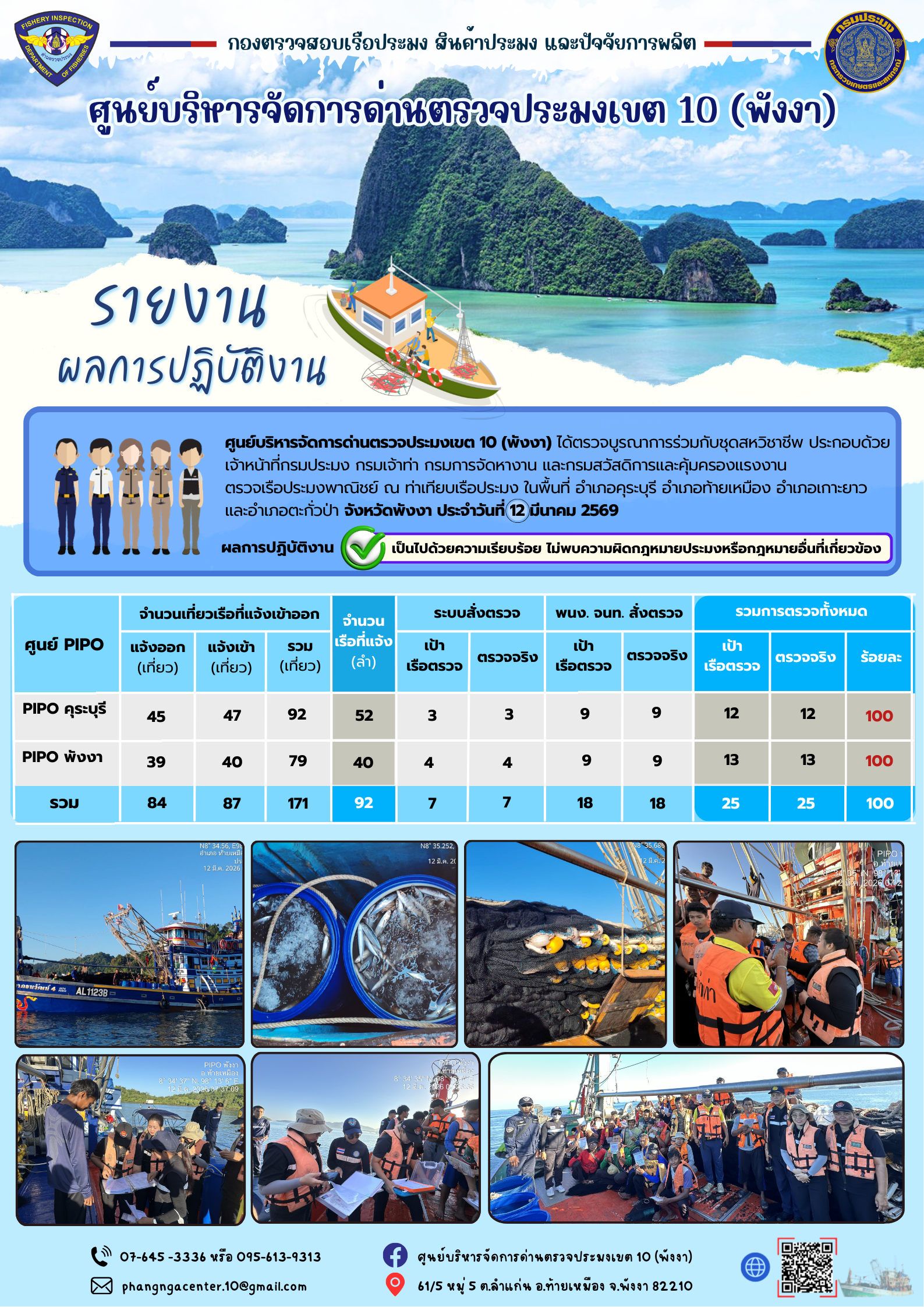 ข่าวประชาสัมพันธ์กิจกรรมการตรวจเรือประมงพาณิชย์แจ้งเข้า - ออก วันที่ 12 มีนาคม 2569