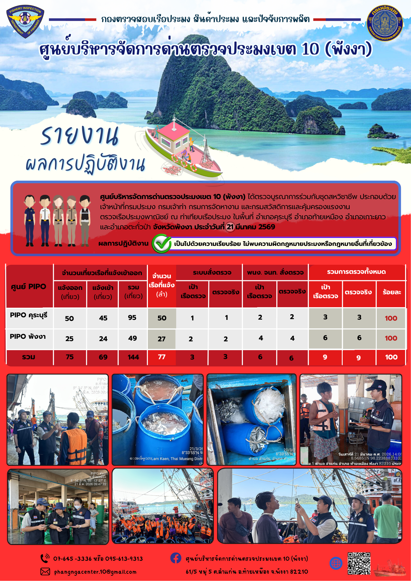 ข่าวประชาสัมพันธ์กิจกรรมการตรวจเรือประมงพาณิชย์แจ้งเข้า - ออก วันที่ 21 มีนาคม 2569