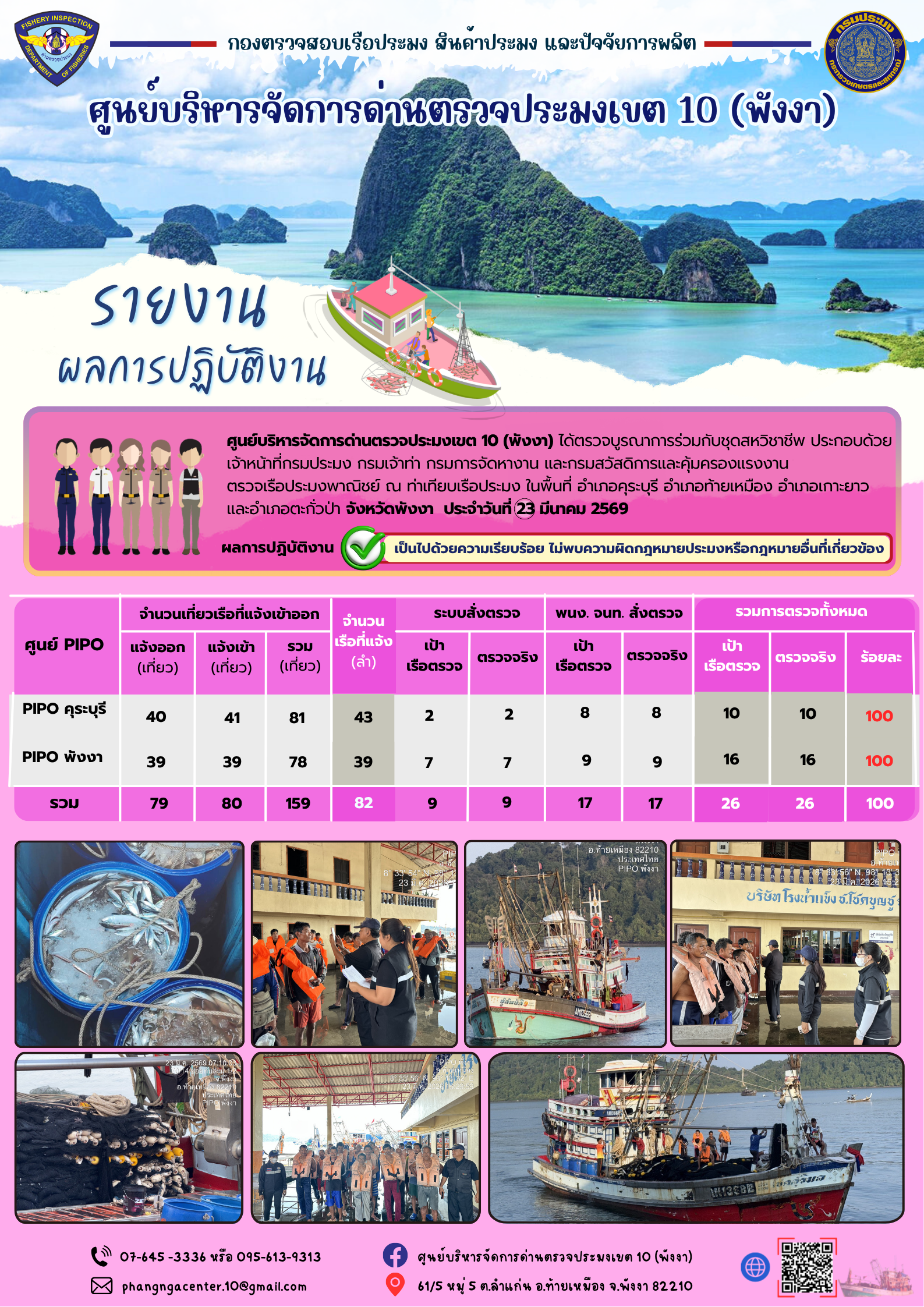 ข่าวประชาสัมพันธ์กิจกรรมการตรวจเรือประมงพาณิชย์แจ้งเข้า - ออก วันที่ 23 มีนาคม 2569