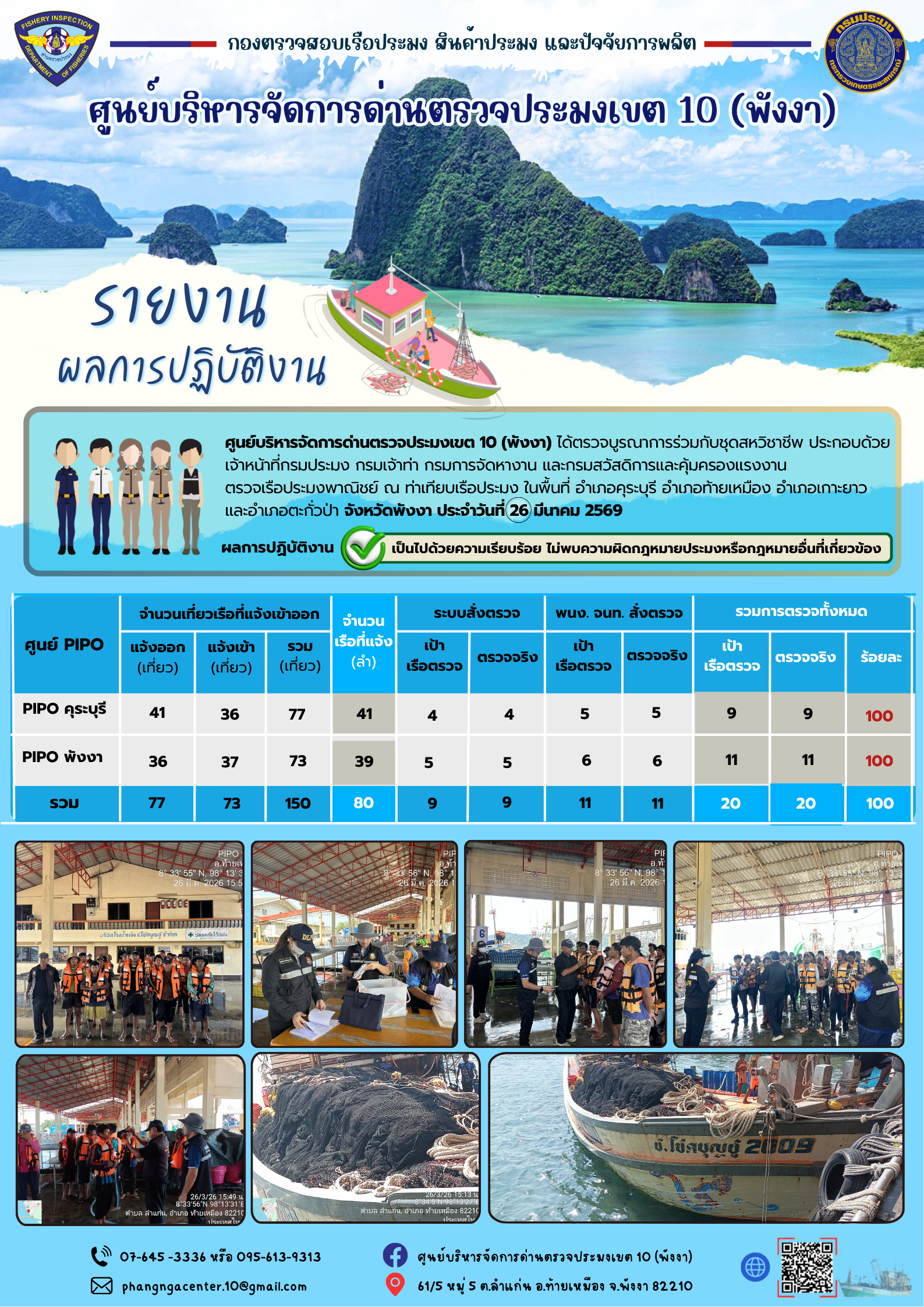 ข่าวประชาสัมพันธ์กิจกรรมการตรวจเรือประมงพาณิชย์แจ้งเข้า - ออก วันที่ 26 มีนาคม 2569