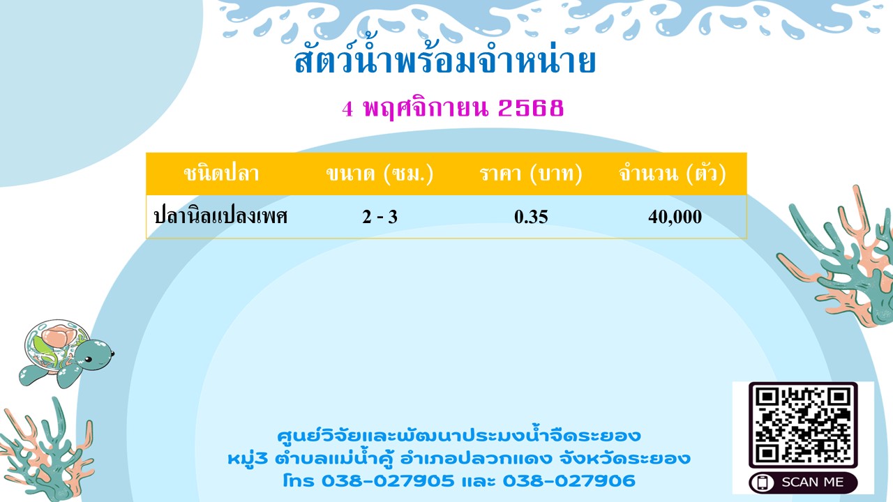 กับข้อเสนอแนะจากเจ้าของข้อมูล โดยศูนย์วิจัยและพัฒนาประมงน้ำจืดระยองจะประกาศแจ้งให้ทราบอย่างชัดเจนก่อนเริ่มดำเนินการ