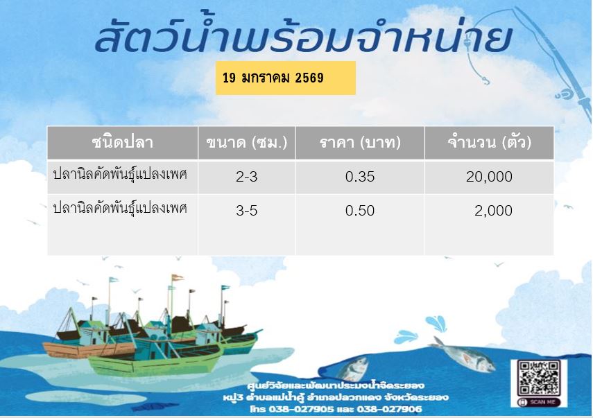 สัตว์น้ำพร้อมจำหน่าย วันที่ 19 มกราคม 2569
