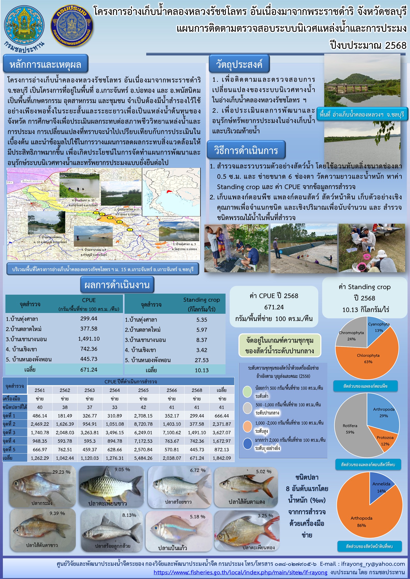 สรุปโครงการอ่างเก็บน้ำคลองหลวงรัชชโลธร อันเนื่องมาจากพระราชดำริ จังหวัดชลบุรี แผนการติดตามตรวจสอบระบบนิเวศแหล่งน้ำและการประมง ปีงบประมาณ 2568