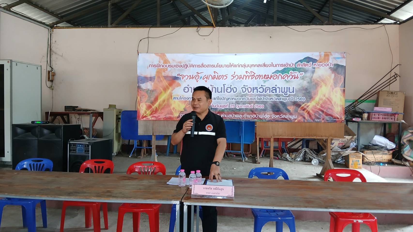 วันที่ 25 กุมภาพันธ์ 2569  เวลา 09.00 น. หน่วยป้องกันและปราบปรามประมงน้ำจืดเขื่อนแม่กวง (เชียงใหม่) โดยนายพลาธิป อภินันท์ศิริ หัวหน้าหน่วยฯ พร้อมเจ้าหน้าที่รวม 4 นาย ดำเนินกิจกรรมจิตอาสาพัฒนาชุมชนร่วมกับอำเภอบ้านโฮ่ง องค์การบริหารส่วนตำบลป่าพูล กำนัน - ผู้ใหญ่บ้าน ชุมชนในพื้นที่ และคณะกรรมการอ่างเก็บน้ำห้วยป่าซางอ่อน ร่วมกิจกรรมอบรมเชิงปฏิบัติการสื่อสารนโยบายให้แก่กลุ่มบุคคลเสี่ยงในการเข้าป่า ล่าสัตว์ หาของป่า “จวนอู้ ผูกมิตร ร่วมพิชิตหมอกควัน” ตามโครงการป้องกันและแก้ไขปัญหาหมอกควันและไฟป่าจังหวัดลำพูน ปี 2569 ในโอกาสนี้หน่วยป้องกันฯ ได้นำเสนอกิจกรรมการดำเนินงานของหน่วยให้ที่ประชุมรับรู้และรับทราบ ณ บ้านแม่หาด และอ่างเก็บน้ำห้วยป่าซางอ่อน หมู่ที่ 6 ต.ป่าพูล อ.บ้านโฮ่ง จ.ลำพูน โดยมีนายอำเภอบ้านโฮ่ง นายจรัล มณีจันสุข เป็นประธานในกิจกรรม