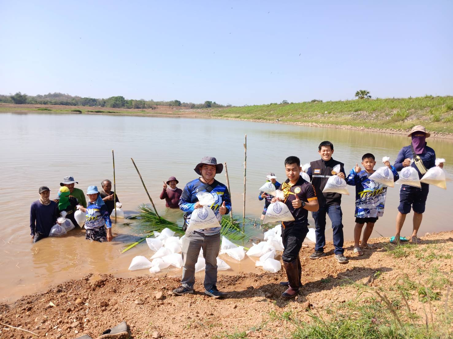 2) ร่วมกันปล่อยพันธุ์สัตว์น้ำ (ลูกกุ้งก้ามกราม) จำนวน 100,000 ตัว เพื่อเพิ่มความอุดมสมบูรณ์ ช่วยฟื้นฟูระบบนิเวศ และสร้างแหล่งอาหารให้แก่ชุมชน  ลงในอ่างเก็บน้ำห้วยหนองสูน บ้านหนองสูน หมู่ที่ 1 ตำบลหนองปลาสะวาย  อำเภอบ้านโฮ่ง จังหวัดลำพูน โดยได้รับการสนับสนุนพันธุ์สัตว์น้ำจาก ศูนย์วิจัยและพัฒนาประมงน้ำจืดตาก