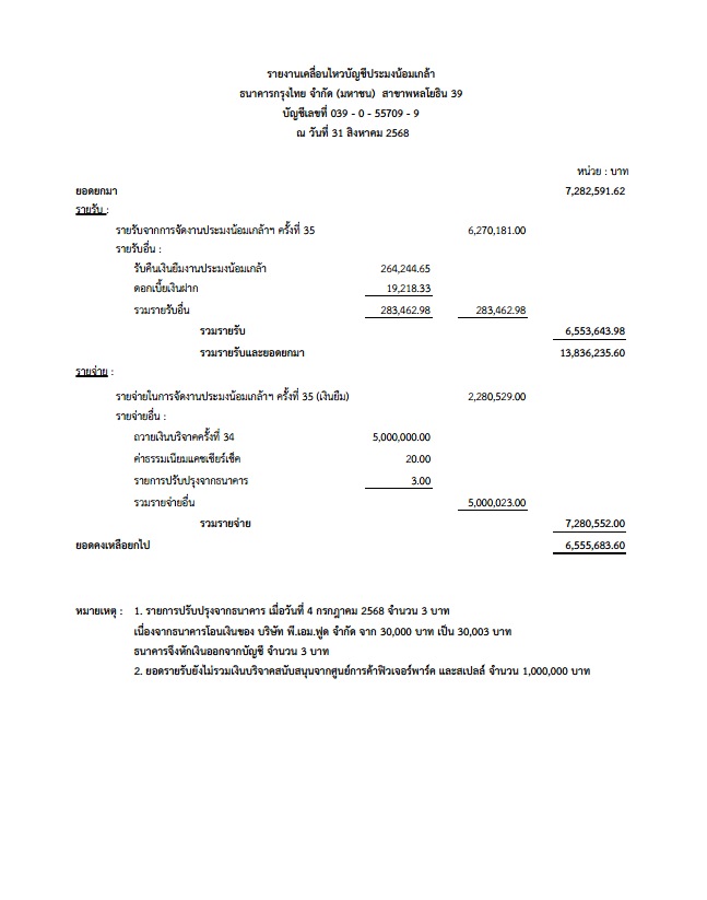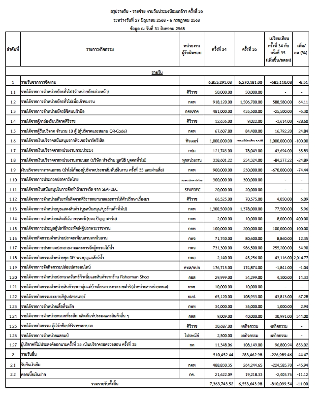 รายงานรายรับ - รายจ่ายจากการจัดงานวันประมงน้อมเกล้าฯ ครั้งที่ 35