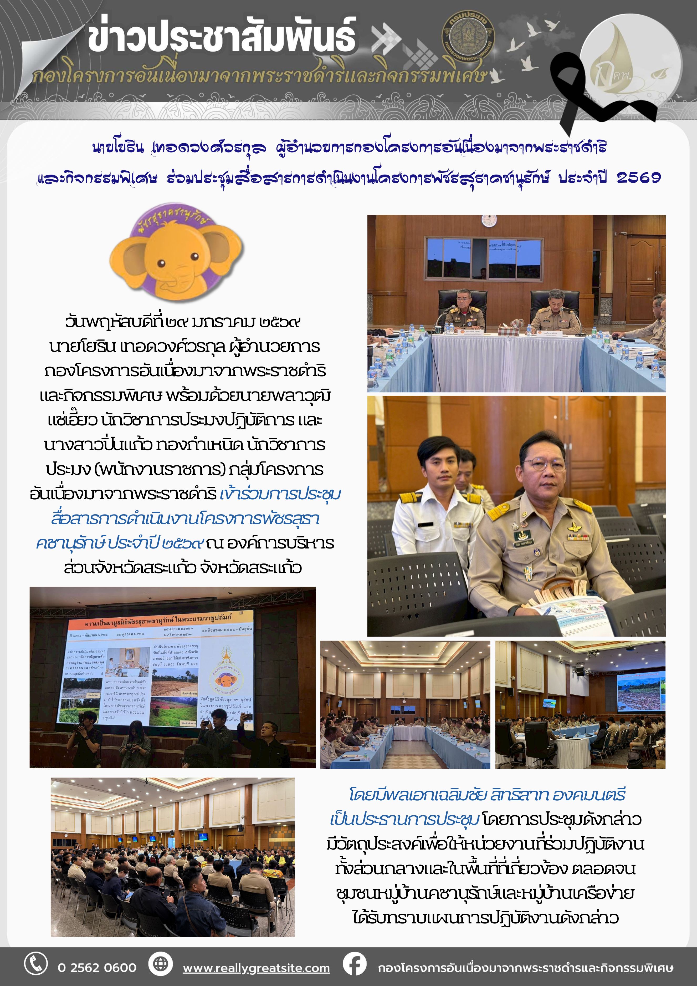 อันเนื่องมาจากพระราชดำริ เข้าร่วมการประชุมสื่อสารการดำเนินงานโครงการพัชรสุธาคชานุรักษ์ ประจำปี ๒๕๖๙