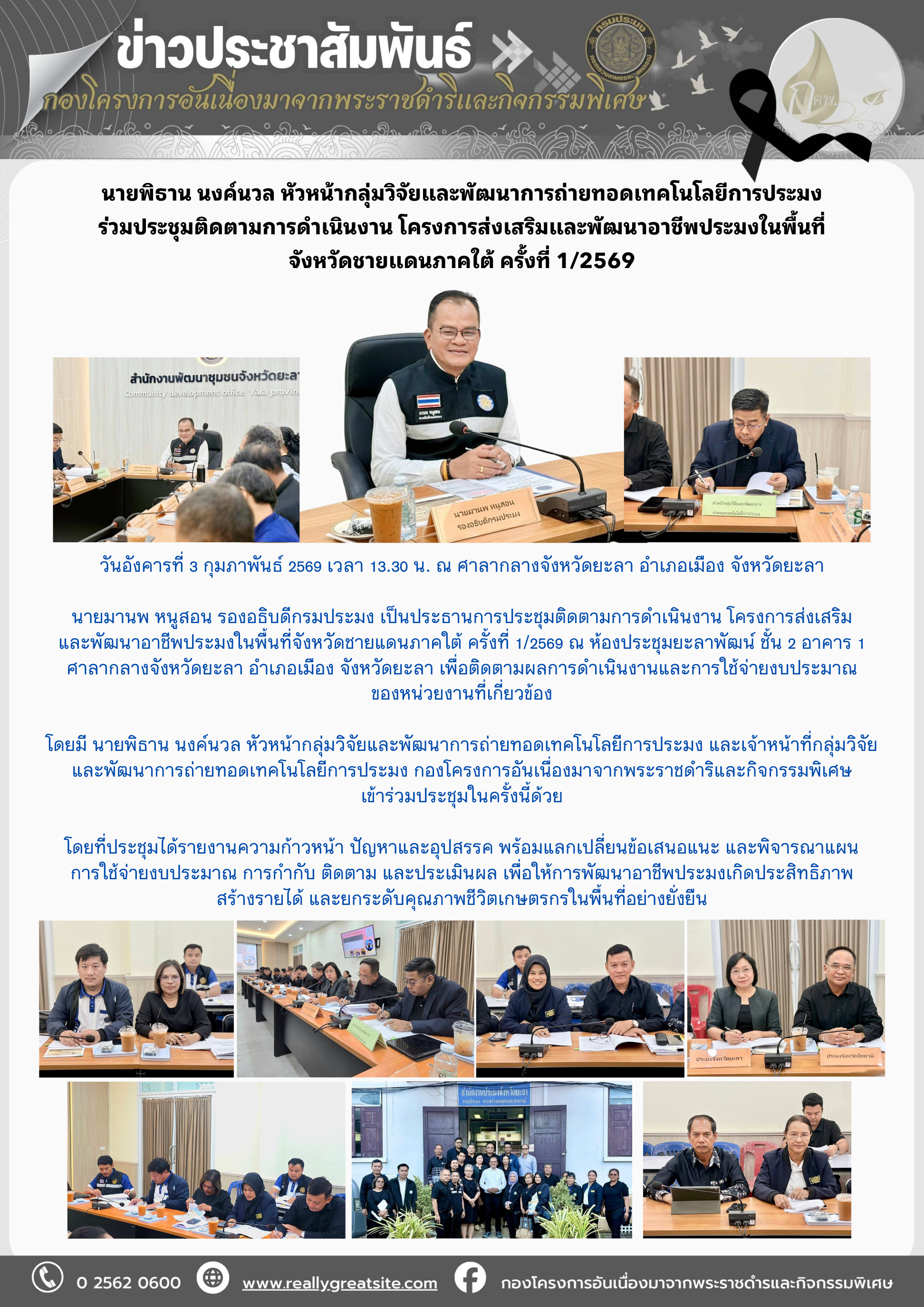 วันอังคารที่ 3 กุมภาพันธ์ 2569 เวลา 13.30 น. ณ ศาลากลางจังหวัดยะลา อำเภอเมือง จังหวัดยะลา