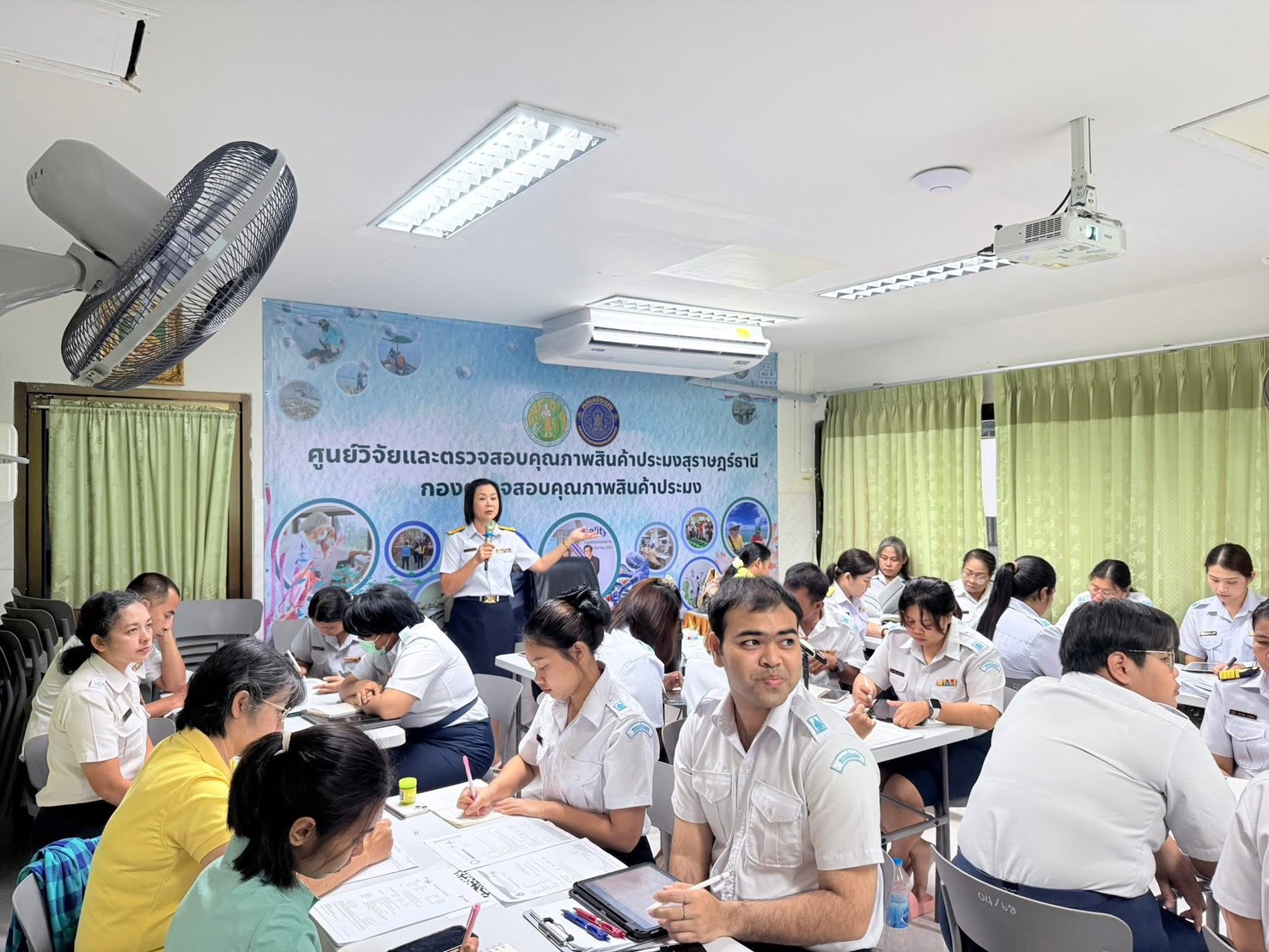 เมื่อวันที่ 6 ตุลาคม 2568 เจ้าหน้าที่ศูนย์วิจัยและตรวจสอบคุณภาพสินค้าประมงสุราษฎร์ธานี และศูนย์วิจัยและพัฒนาประมงทะเลชุมพร เข้าร่วมการฝึกอบรมเรื่องการแปลผลรายงานผลการสอบเทียบ ณ ห้องประชุมศูนย์วิจัยและตรวจสอบคุณภาพสินค้าประมงสุราษฎร์ธานี โดยมีนางธีรยา สรรพวรพงษ์ ผู้อำนวยการศูนย์วิจัยและตรวจสอบคุณภาพสินค้าประมงสุราษฎร์ธานี เป็นวิทยากรให้ความรู้ในครั้งนี้ เพื่อส่งเสริมให้เจ้าหน้าที่มีความรู้ความเข้าใจในการแปลผลรายงานผลการสอบเทียบประกอบการทำงานต่อไป