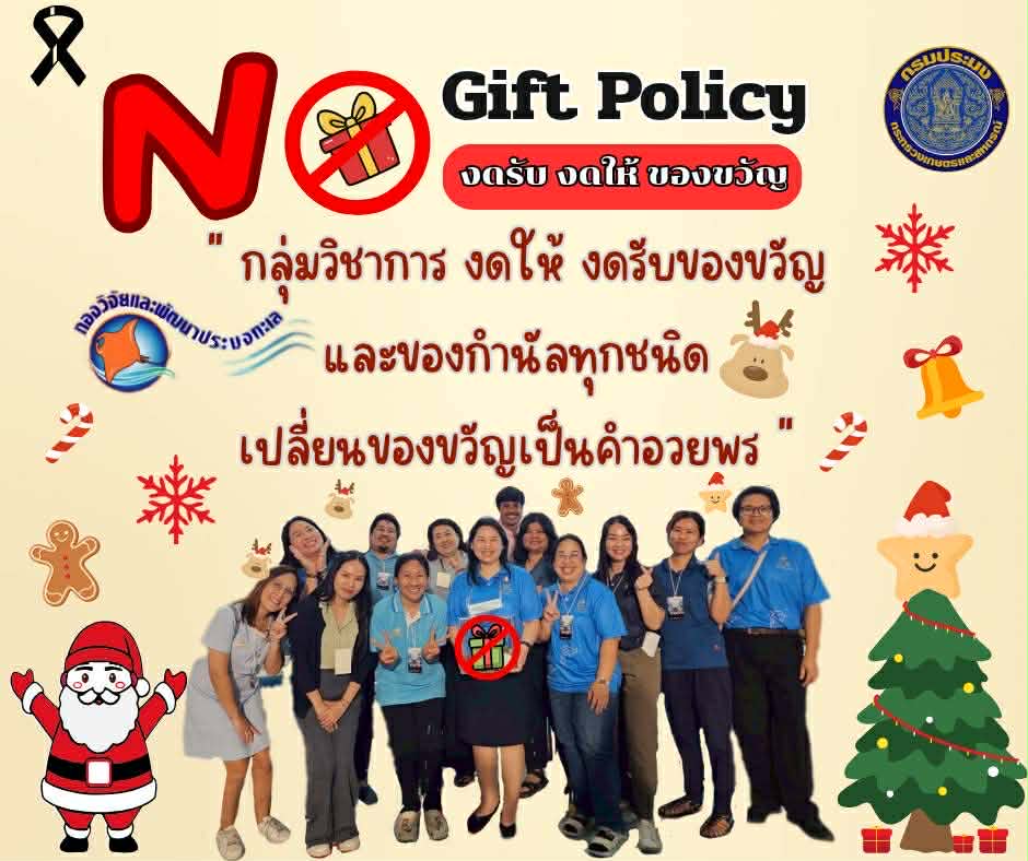 กลุ่มวิชาการ กองวิจัยและพัฒนาประมงทะเลดำเนินการตามประกาศเจตนารมณ์ไม่รับของขวัญและของกำนัลทุกชนิดจากการปฏิบัติหน้าที่ (No Gift Policy) ประจำปีงบประมาณ พ.ศ. ๒๕๖๙ ของกรมประมง