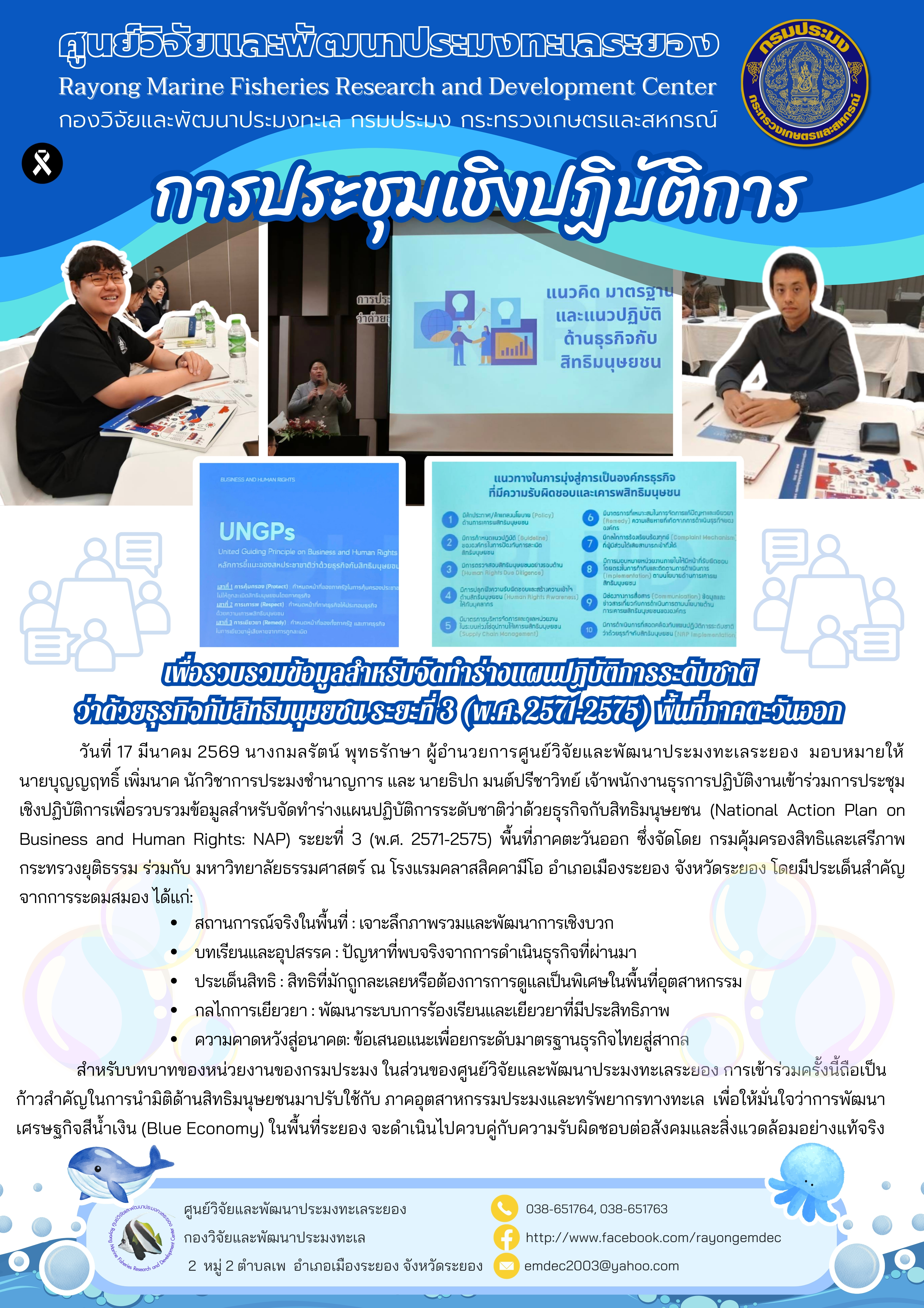 ศูนย์วิจัยและพัฒนาประมงทะเลระยอง เลขที่ 50 เกษตรกลาง เขตจตุจักร กรุงเทพมหานคร 10900