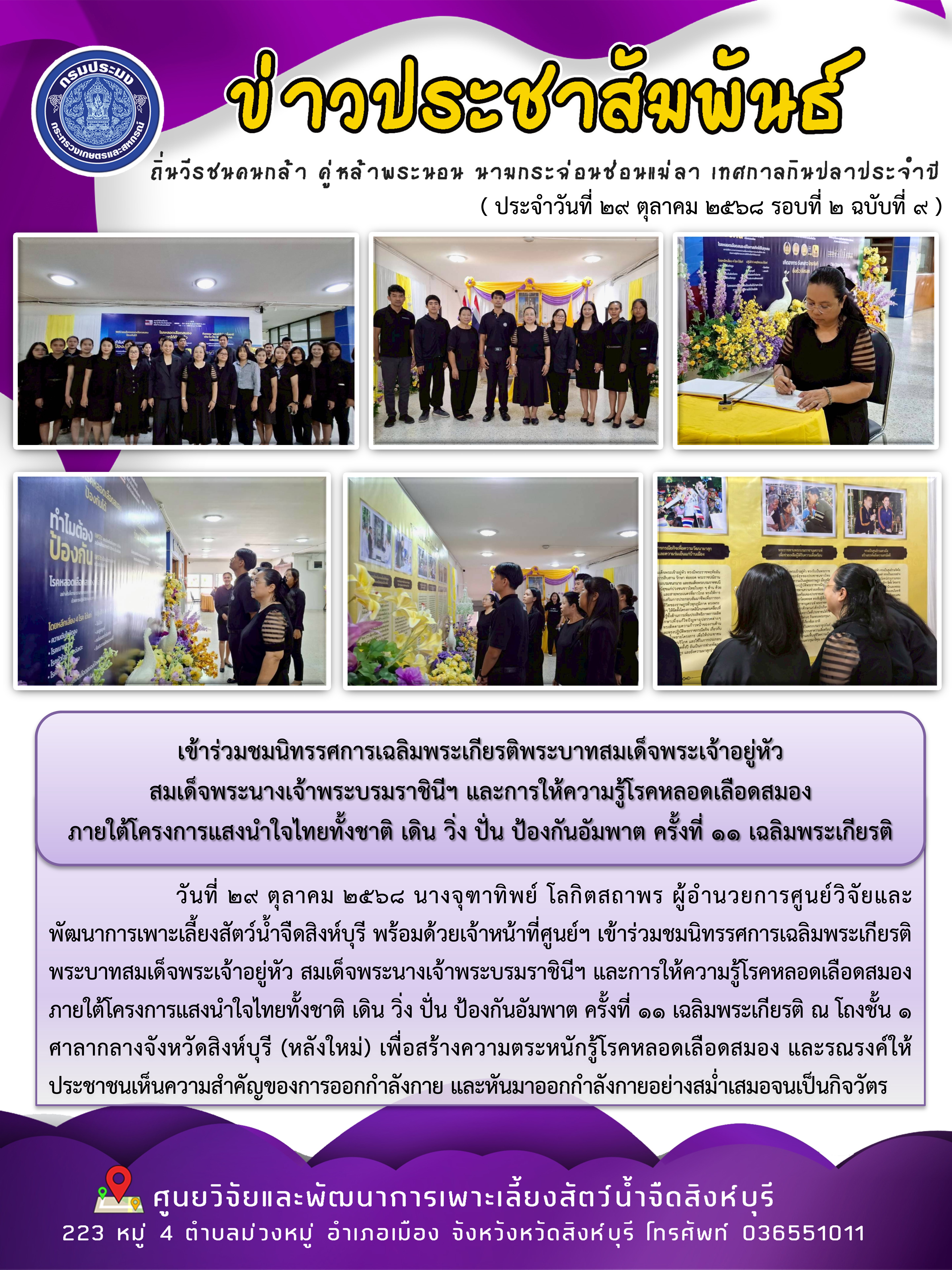เข้าร่วมชมนิทรรศการเฉลิมพระเกียรติพระบาทสมเด็จพระเจ้าอยู่หัว สมเด็จพระนางเจ้าพระบรมราชินีฯ และการให้ความรู้โรคหลอดเลือดสมอง ภายใต้โครงการแสงนำใจไทยทั้งชาติ เดิน วิ่ง ปั่น ป้องกันอัมพาต ครั้งที่ 11 เฉลิมพระเกียรติ
