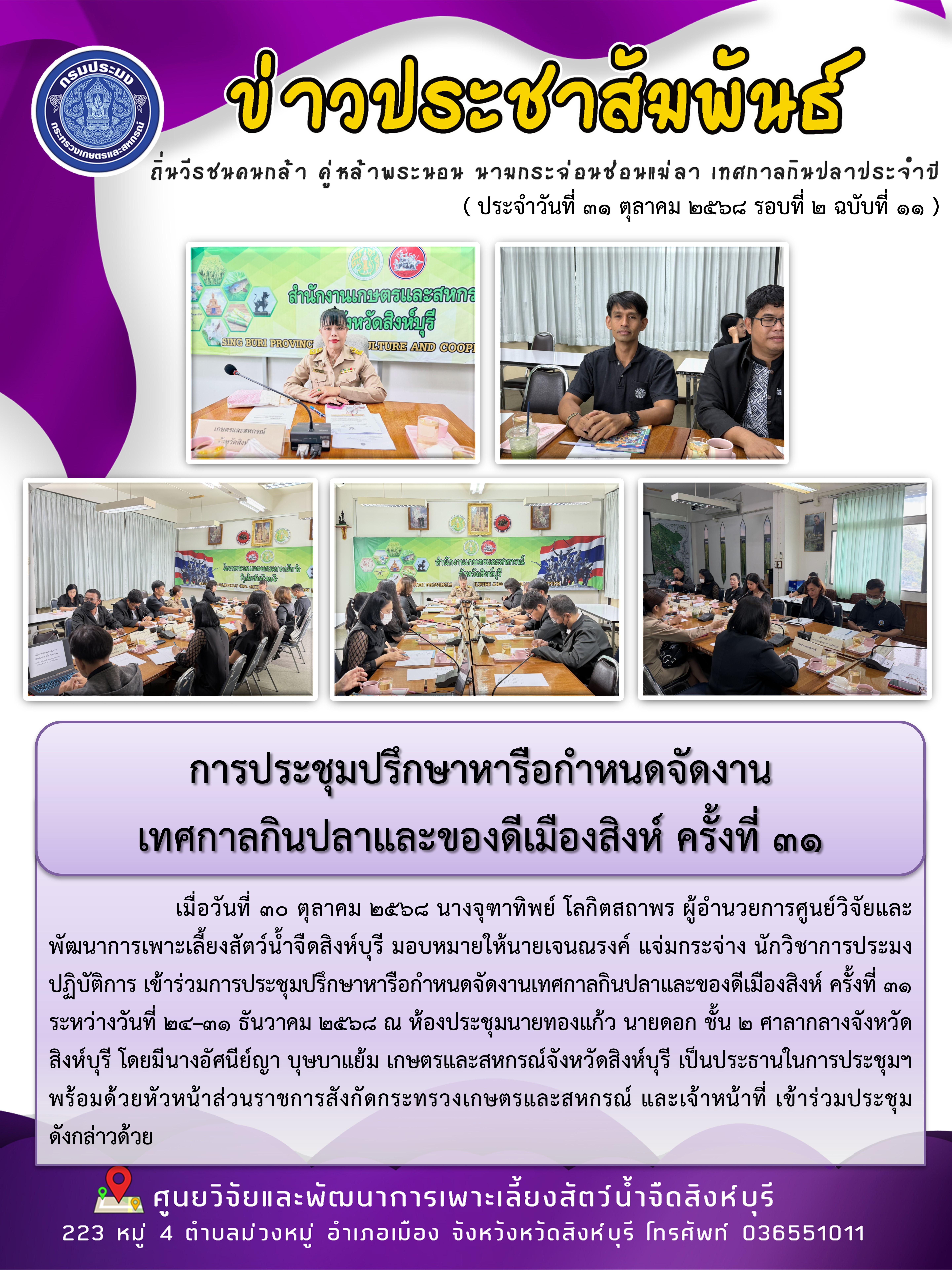 การประชุมปรึกษาหารือกำหนดจัดงาน เทศกาลกินปลาและของดีเมืองสิงห์ ครั้งที่ 31