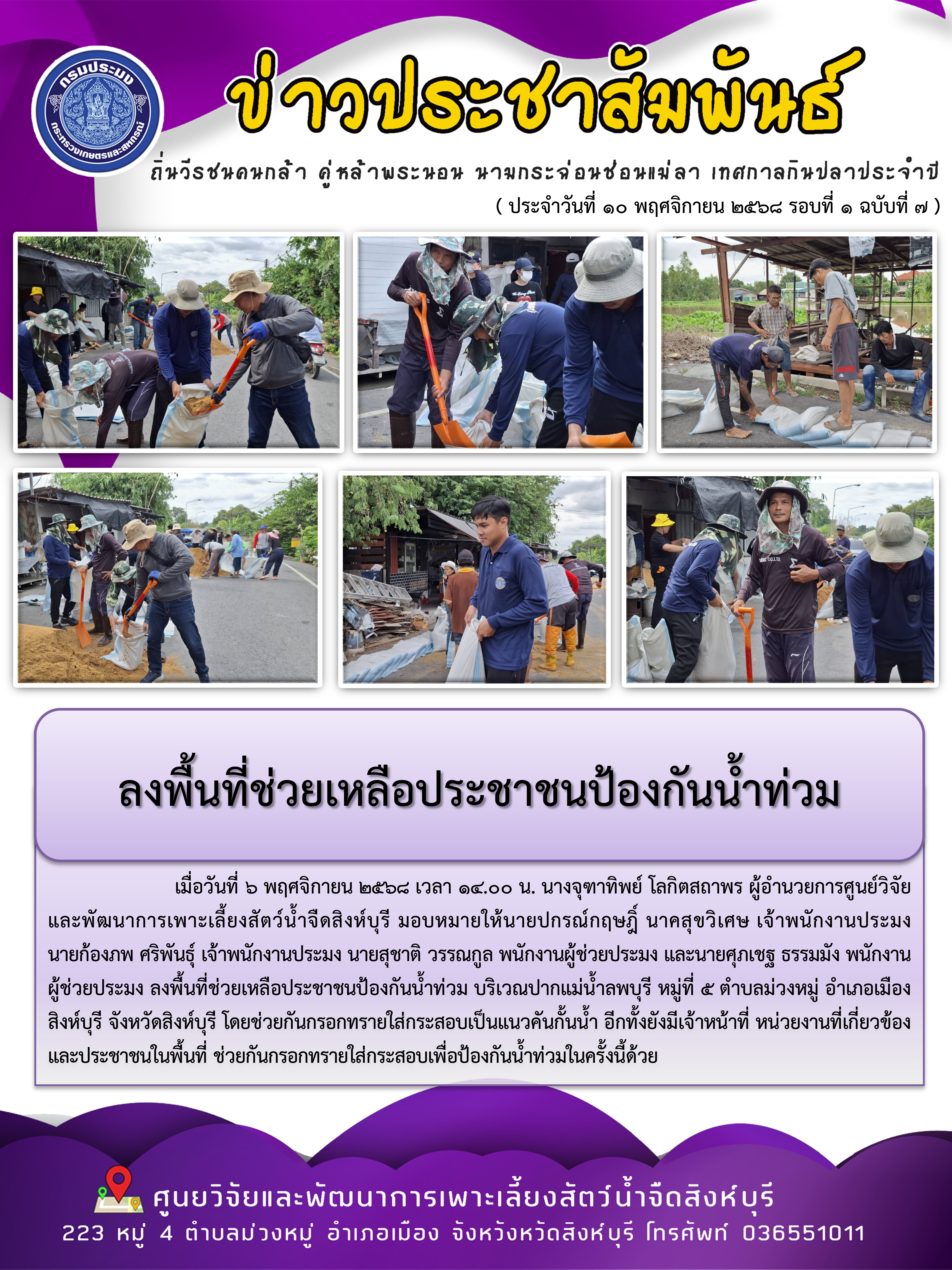ลงพื้นที่ช่วยเหลือประชาชนป้องกันน้ำท่วม