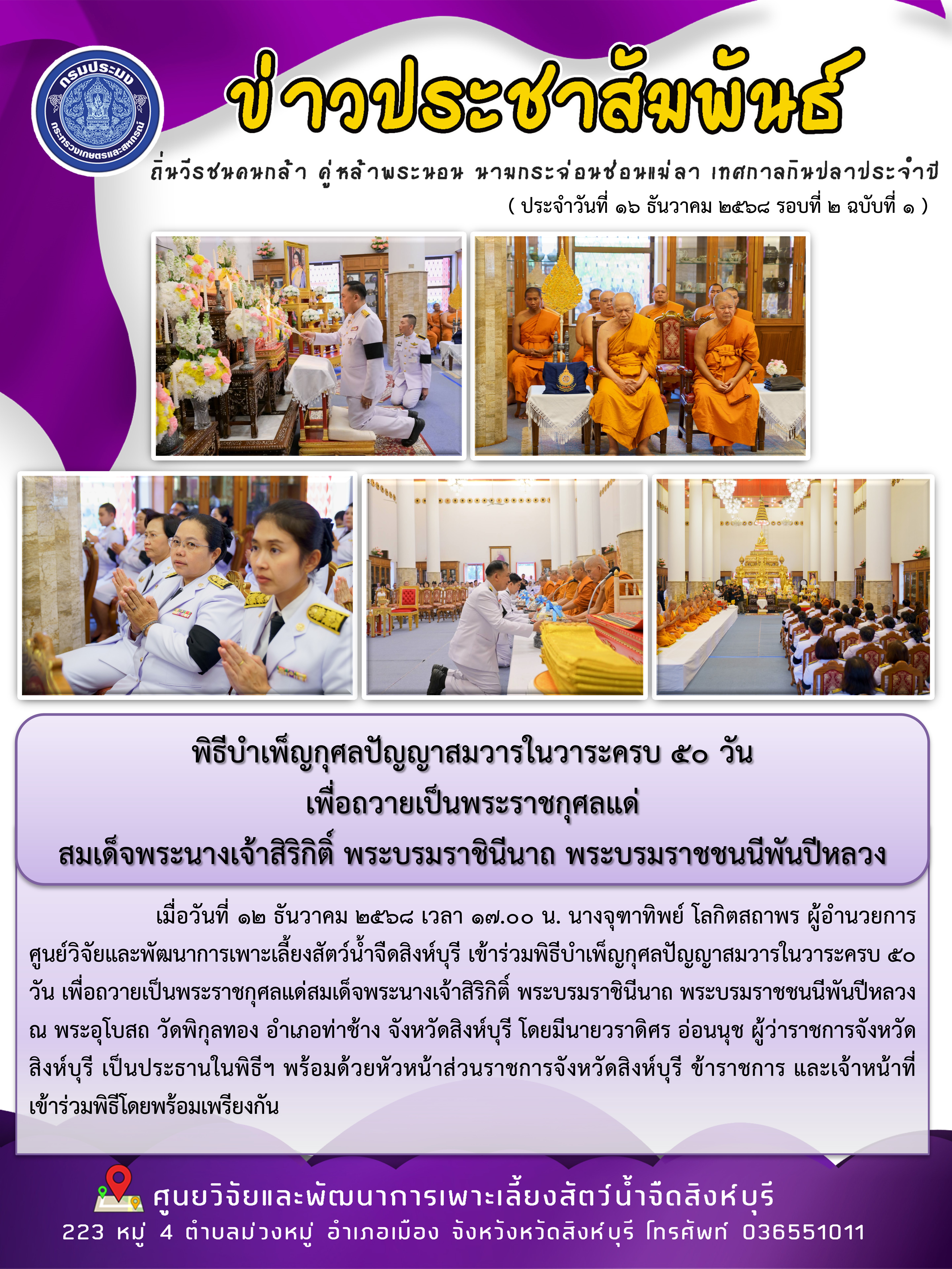 ศูนย์วิจัยและพัฒนาการเพาะเลี้ยงสัตว์น้ำจืดสิงห์บุรี เลขที่ 50 เกษตรกลาง เขตจตุจักร กรุงเทพมหานคร 10900
