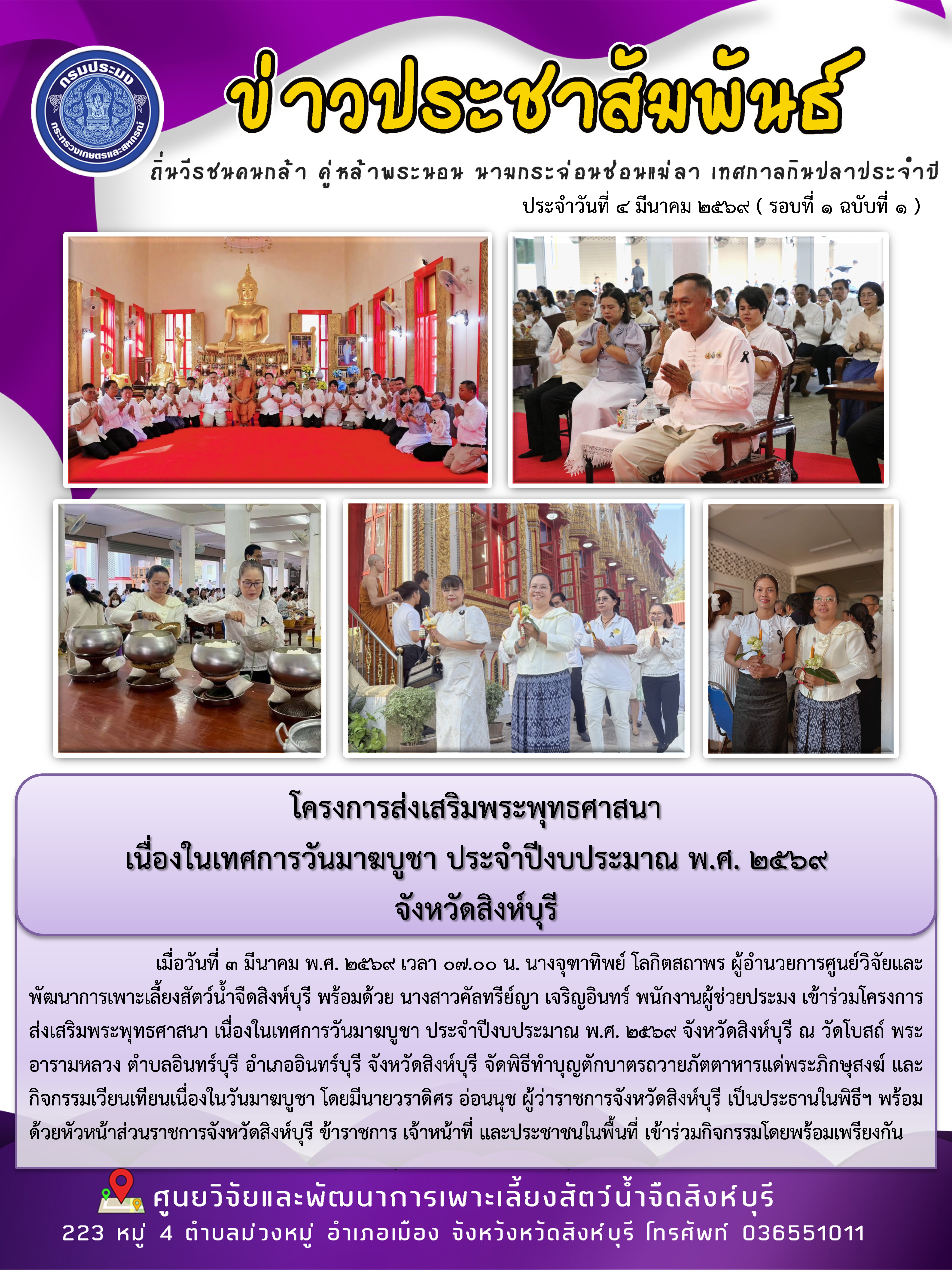 ศูนย์วิจัยและพัฒนาการเพาะเลี้ยงสัตว์น้ำจืดสิงห์บุรี เลขที่ 50 เกษตรกลาง เขตจตุจักร กรุงเทพมหานคร 10900