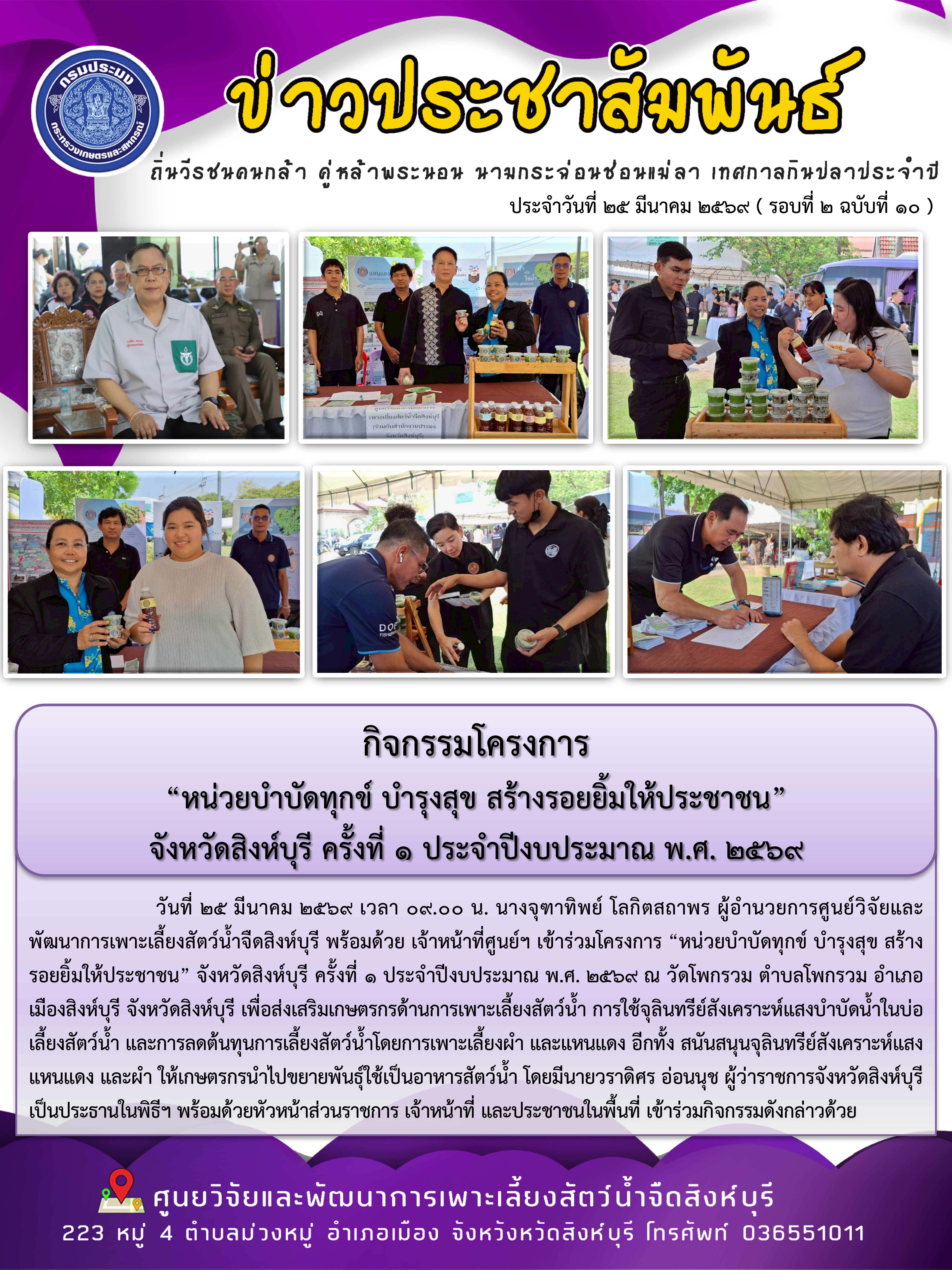 กิจกรรมโครงการ “หน่วยบำบัดทุกข์ บำรุงสุข สร้างรอยยิ้มให้ประชาชน” จังหวัดสิงห์บุรี ครั้งที่ 1 ประจำปีงบประมาณ พ.ศ. 2569