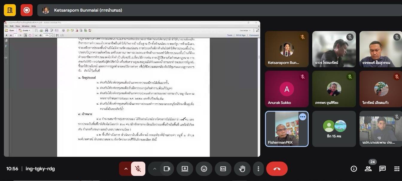 วันที่ 5 พ.ย. 68 นปท.บางสะพานฯ ศปท.ชุมพร กองตรวจการประมง กรมประมง โดย นายสมชาย ศรีสวัสดิ์ หน.นปท.บางสะพานฯ เข้าร่วมประชุมคณะกรรมการขับเคลื่อนนโยบายกรมประมง (fisheries co – Ordinator : fc) จังหวัดประจวบคีรีขันธ์ ครั้งที่ 8 / 2568 เรื่องที่ประชุมเกี่ยวกับรับรองรายงานการประชุมคณะกรรมการขับเคลื่อนนโยบายของกรมประมงจังหวัดประจวบคีรีขันธ์ ครั้งที่ 7/2568 และอนุมัติโครงการ/กิจกรรม แผนการปฏิบัติงานและแผนการใช้จ่ายงบประมาณ (งบเงินอุดหนุน) ขององค์กรชุมชนประมงท้องถิ่นที่ผ่านการคัดเลือกเข้าร่วมโครงการสร้างความเข้มแข็งกลุ่มการผลิตด้านประมง ประจำปีงบประมาณ พ.ศ. 2569 จำนวน 7 องค์กร และสอบถามปัญหาและอุปสรรคในการดำเนินงานของแต่ละหน่วยฯของกลุ่ม fc สำนักงานประมงจังหวัดประจวบคีรีขันธ์ ณ ห้องประชุมสำนักงานประมงจังหวัดประจวบคีรีขันธ์ โดยผ่านระบบ video conference google meet โดยมี ว่าที่ร้อยตรีสมนึก พรหมศร (ประมงจังหวัดประจวบคีรีขันธ์) เป็นประธานในการประชุม