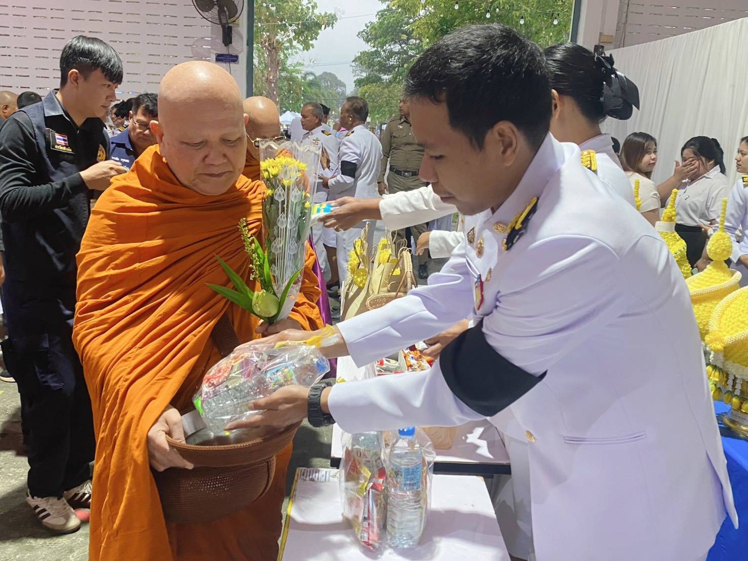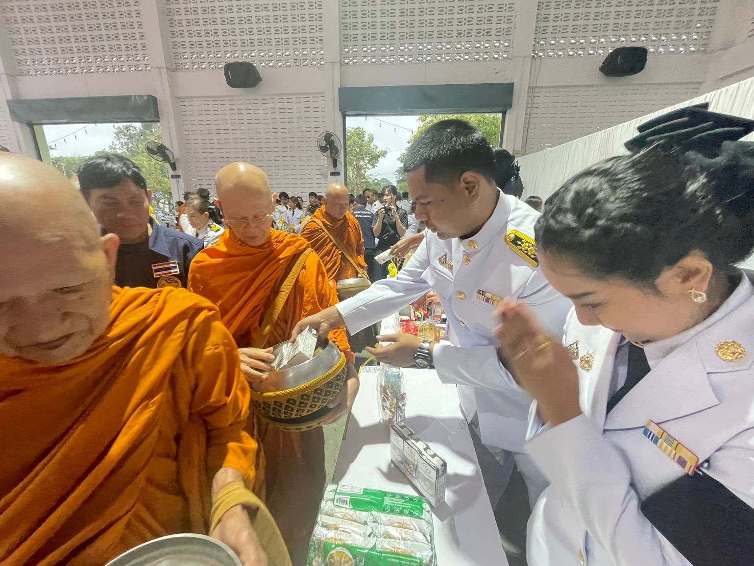 "พิธีเจริญพระพุทธมนต์ ทำบุญตักบาตรถวายพระราชกุศล“