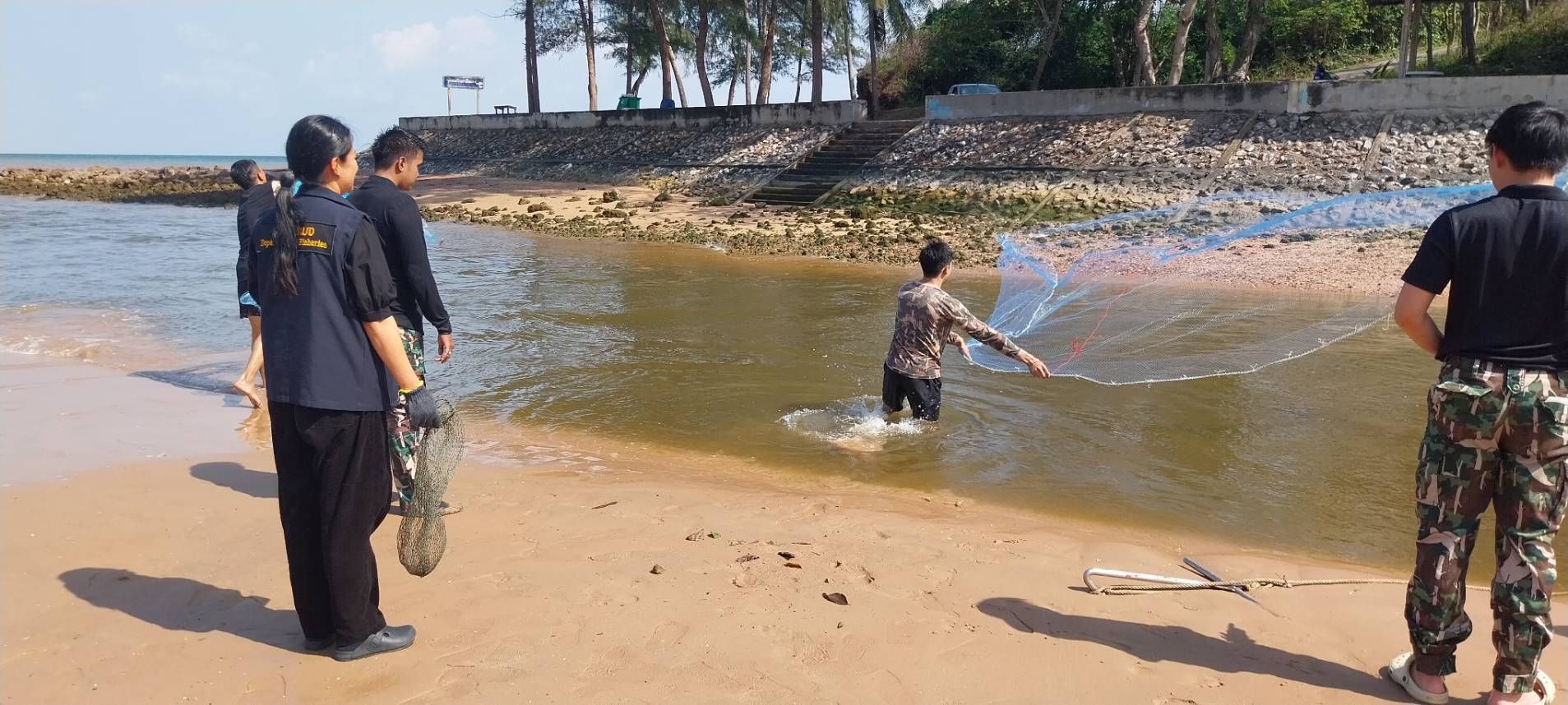 วันที่ 30 ม.ค. 2569 นปท.บางสะพานฯ ศปท.ชุมพร กองตรวจการประมง กรมประมง โดยนายสมชาย ศรีสวัสดิ์ หัวหน้าหน่วยฯ พร้อมด้วย นายจักริน ครุฑกาศ เจ้าพนักงานประมงชำนาญงาน หัวหน้างานป้องกันและปราบปราม ศปท.ชุมพร เข้าร่วมประชุมกลุ่มฯ และประชาสัมพันธ์เชิญชวนพี่น้องชาวประมงเข้าร่วมงานพิธีประกาศใช้มาตรการบริหารจัดการทรัพยากรสัตว์น้ำฤดูสัตว์น้ำมีไข่ หรือวางไข่ เลี้ยงตัวอ่อน ในที่จับสัตว์น้ำบางส่วนของจังหวัดประจวบคีรีขันธ์ ชุมพร และสุราษฎร์ธานี ประจำปี 2569 และกฎหมายอื่นที่เกี่ยวข้อง พร้อมทั้งร่วมกิจกรรมลงแขกลงคลอง จับปลาหมอคางดำ เพื่อกำจัดปลาหมอคางดำออกจากแหล่งน้ำ ควบคุมและลดจำนวนของปลาหมอคางดำ โดยใช้เครื่องมือชนิดแหในการตรวจสอบปริมาณของปลาหมอคางดำในแหล่งน้ำธรรมชาติ จำนวน 5 กิโลกรัม ทำปุ๋ยหมักใส่ต้นไม้ต่อไป ณ ธนาคารปูคลองฝั่งแดง หมู่3 ตำบลทรายทอง อำเภอบางสะพานน้อย จังหวัดประจวบคีรีขันธ์