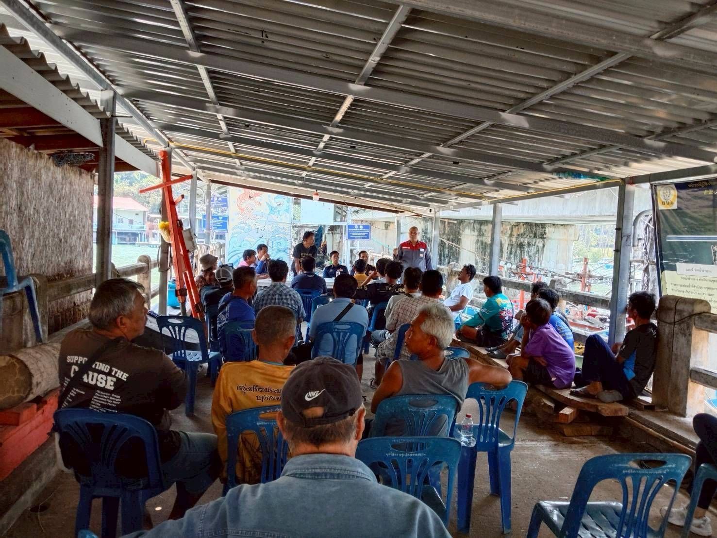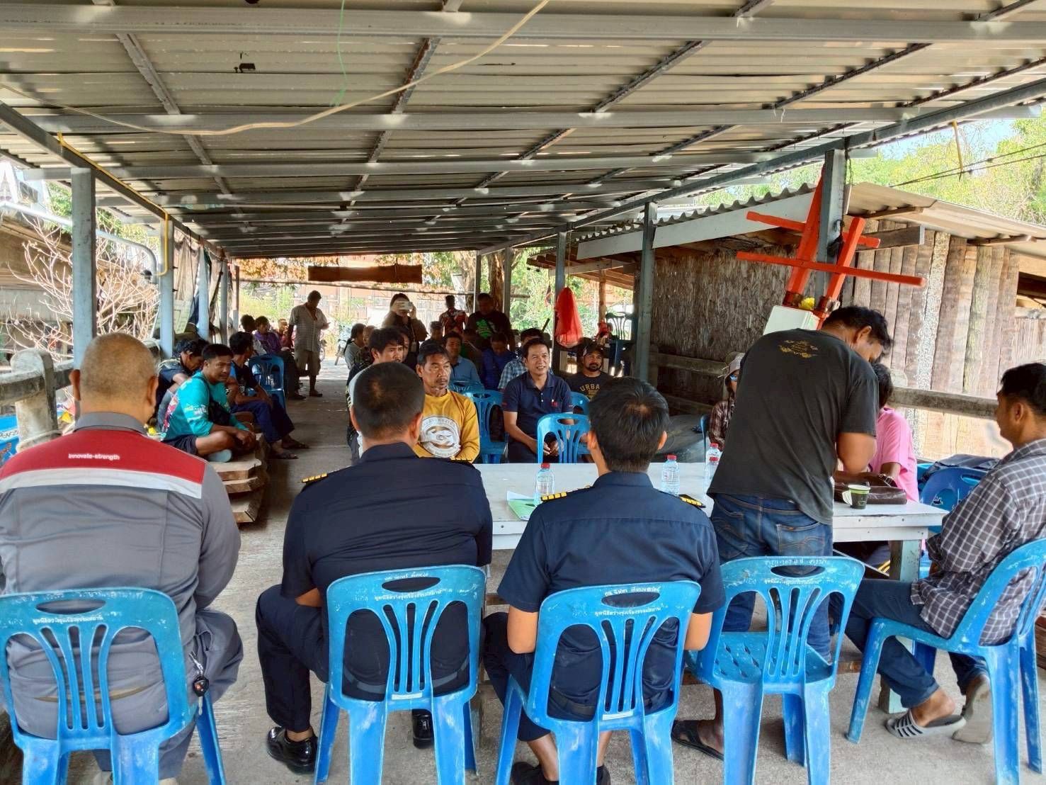 วันที่ 3 ก.พ. 2569 นปท.บางสะพานฯ ศปท.ชุมพร กองตรวจการประมง กรมประมง โดยนายสมชาย ศรีสวัสดิ์ หัวหน้าหน่วยฯ พร้อมด้วยเจ้าหน้าที่หน่วยร่วมประชุมประชาสัมพันธ์เชิญชวนพี่น้องชาวประมงเข้าร่วมงานพิธีประกาศใช้มาตรการบริหารจัดการทรัพยากรสัตว์น้ำฤดูสัตว์น้ำมีไข่ หรือวางไข่ เลี้ยงตัวอ่อน ในที่จับสัตว์น้ำบางส่วนของจังหวัดประจวบคีรีขันธ์ ชุมพร และสุราษฎร์ธานี ประจำปี 2569 และกฎหมายอื่นที่เกี่ยวข้อง ณ กลุ่มเรือประมงพื้นบ้านบางสะพาน ต.แม่รำพึง อ.บางสะพาน จ.ประจวบคีรีขันธ์