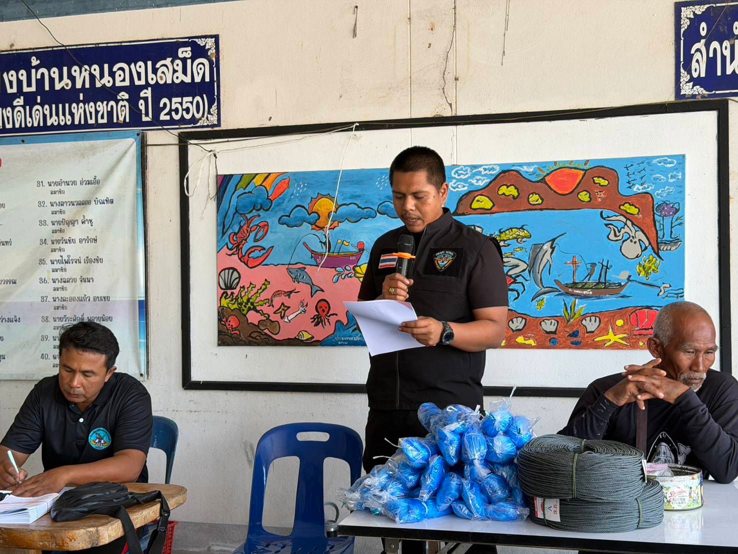 วันที่ 5 ก.พ. 2569 นปท.บางสะพานฯ ศปท.ชุมพร กองตรวจการประมง กรมประมง โดยนายสมชาย ศรีสวัสดิ์ หัวหน้าหน่วยฯ พร้อมด้วยเจ้าหน้าที่หน่วย และประมงอำเภอบางสะพานน้อย ร่วมประชุมประชาสัมพันธ์เชิญชวนพี่น้องชาวประมงเข้าร่วมงานพิธีประกาศใช้มาตรการบริหารจัดการทรัพยากรสัตว์น้ำฤดูสัตว์น้ำมีไข่ หรือวางไข่ เลี้ยงตัวอ่อน ในที่จับสัตว์น้ำบางส่วนของจังหวัดประจวบคีรีขันธ์ ชุมพร และสุราษฎร์ธานี ประจำปี 2569 กฎหมายอื่นที่เกี่ยวข้อง ณ กลุ่มประมงบ้านหนองเสม็ด อ.บางสะพานน้อย จ.ประจวบคีรีขันธ์