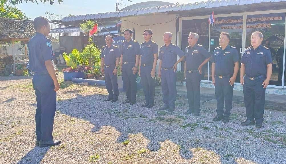 วันที่ 2 มี.ค. 2569 นปท.บางสะพานฯ ศปท.ชุมพร กองตรวจการประมง กรมประมง โดย นายสมชาย ศรีสวัสดิ์ หัวหน้าหน่วยฯ พร้อมเจ้าหน้าที่หน่วยฯ เข้าแถวเคารพธงชาติ สวดมนต์ไหว้พระ เพื่อความเป็นสิริมงคล แก่เจ้าหน้าที่ ทั้งนี้ได้ชี้แจงการปฏิบัติงานเตรียมพร้อมเจ้าหน้าที่ และมอบหมายการปฏิบัติงานช่วงมาตรการปิดอ่าวไทยในที่จับสัตว์น้ำบางส่วนของจังหวัดประจวบคีรีขันธ์ ชุมพร และสุราษฎร์ธานี ประจำปี 2569 พร้อมทั้งรายงานความคืบหน้างานซ่อมบำรุงเรือตรวจประทงทะเล 611 ณ หน่วยป้องกันและปราบปรามประมงทะเลบางสะพาน (ประจวบคีรีขันธ์)