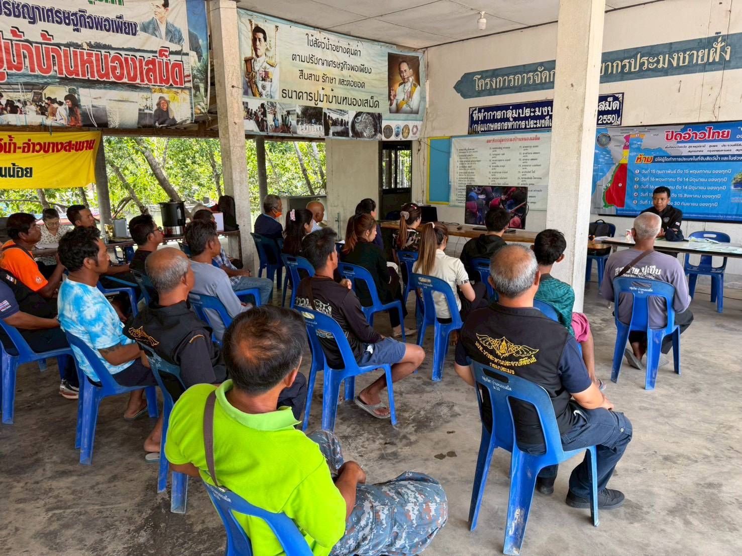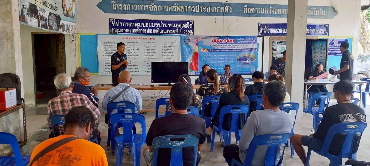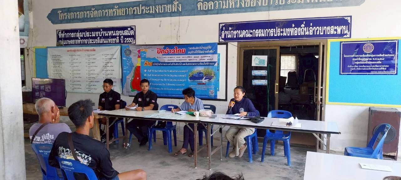 วันที่ 5 มี.ค. 69 นปท.บางสะพานฯ ศปท.ชุมพร กองตรวจการประมง กรมประมง โดย นายสมชาย ศรีสวัสดิ์ หัวหน้าหน่วยฯ พร้อมเจ้าหน้าที่หน่วยฯ จัดกิจกรรมประชาสัมพันธ์ระดับพื้นที่ จัดเวทีประชุมชาวประมง เพื่อชี้แจงมาตรการบริหารจัดการทรัพยากรสัตว์น้ำมีไข่ หรือวางไข่ เลี้ยงตัวอ่อน พื้นที่ทะเลอ่าวไทยตอนกลาง สร้างความเข้าใจและยอมรับในการบังคับใช้กฎหมาย อันจะส่งผลให้เกิดความร่วมมือในการบริหารจัดการทรัพยากรประมงอย่างยั่งยืน พร้อมรับฟังความคิดเห็นและข้อเสนอแนะของชาวประมง ณ กลุ่มประมงพื้นบ้านหนองเสม็ด อ.บางสะพานน้อย จ.ประจวบฯ