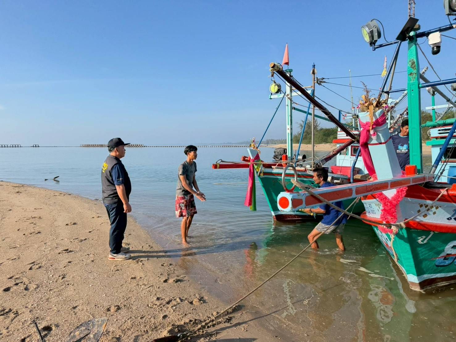 วันที่ 6 มี.ค. 69 นปท.บางสะพานฯ ศปท.ชุมพร กองตรวจการประมง กรมประมง โดย นายสมชาย ศรีสวัสดิ์ หน.นปท. บางสะพานฯ พร้อมเจ้าหน้าที่หน่วยฯ พบปะชาวประมงในพื้นที่บริเวณธนาคารปูม้าบ้านปากคลองสอบถามปัญหาและอุปสรรคในการออกทำการประมงและสัตว์น้ำที่จับได้ในช่วงการประกาศใช้มาตรการปิดอ่าวไทยของกรมประมง ในระหว่างวันที่ 15 ก.พ. – 15 พ.ค. 2569 ในพื้นที่ อ่าวบางสะพานและพื้นที่ใกลเคียงพร้อมทั้งชี้แจงข่าวสารที่สำคัญที่เกี่ยวข้องด้านการประมง ตามพระราชกำหนดการประมง พ.ศ. 2558 และที่แก้ไขเพิ่มเติมให้ชาวประมงทราบ ณ. บริเวณธนาคารปูม้าบ้านปากคลอง อ.บางสะพาน จ.ประจวบฯ