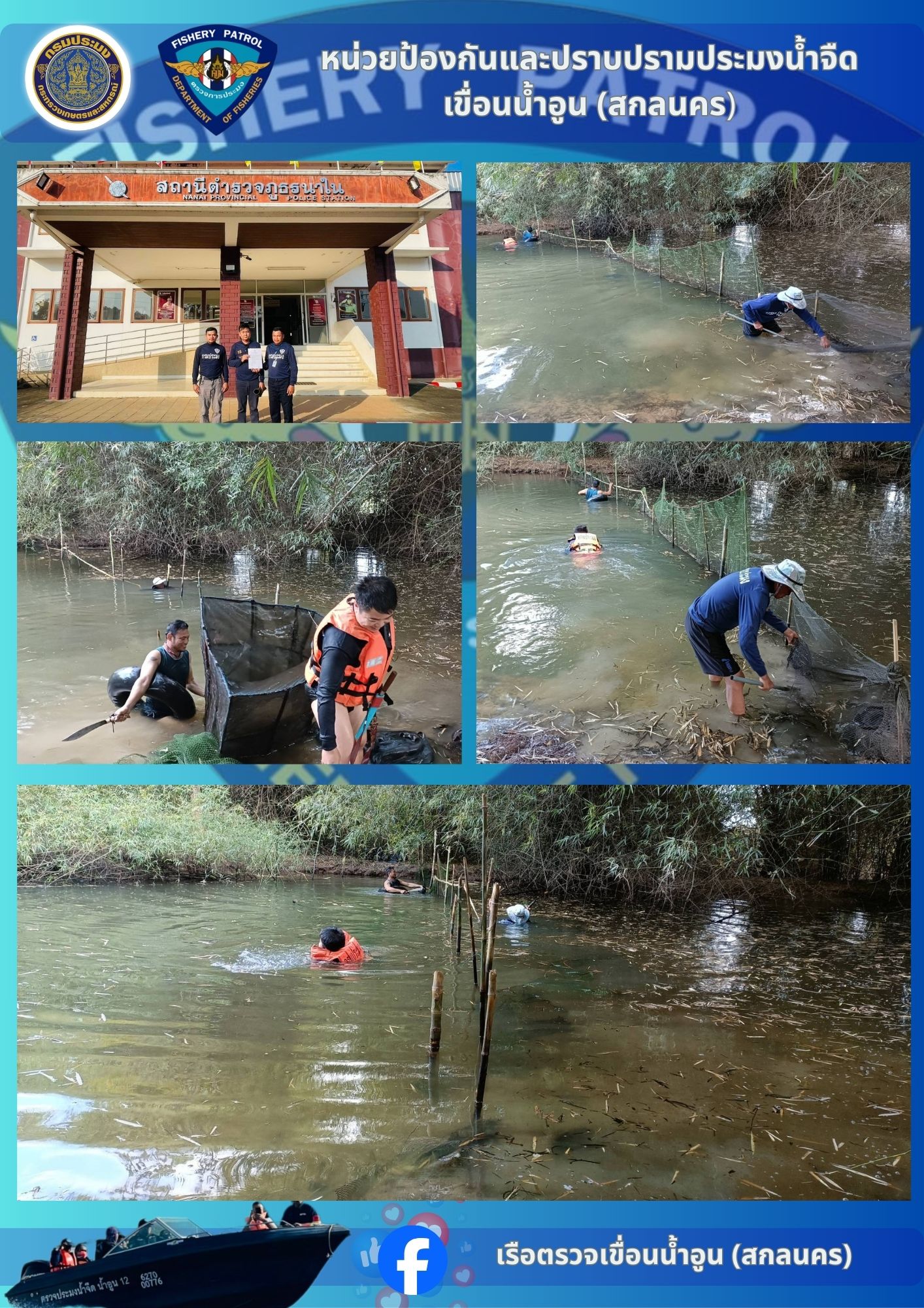 วันที่ 8 ธันวาคม 2568 เจ้าหน้าที่หน่วยป้องกันและปราบปรามประมงน้ำจืดเขื่อนน้ำอูน (สกลนคร) ร่วมกับ นายศักดิ์เกษม วงศ์ศรีดา ประมงอำเภอพรรณานิคม ออกปฏิบัติงานควบคุมการประมงในพื้นที่อำเภอพรรณานิคม จังหวัดสกลนคร ได้ทำการรื้อถอนทำลายเครื่องมืออวนกางกั้นประกอบลอบนอน จำนวน 1 ปาก ขนาดปากกว้างประมาณ 10 เมตร ความลึกประมาณ 2 เมตร พร้อมลอบนอน 2 ลูก ในคลองอูน พื้นที่หมู่ที่ 1 บ้านอูนดง ตำบลนาใน อำเภอพรรณานิคม จังหวัดสกลนคร พร้อมลงบันทึกประจำวันไว้เป็นหลักฐาน ณ สภ.นาใน ตามปจว.ข้อ 2 ลงวันที่ 8 ธันวาคม 2568
