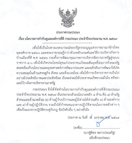 ประชาสัมพันธ์ นโยบายการกำกับดูแลองค์การที่ดี กรมประมง ประจำปีงบประมาณ พ.ศ. 2569