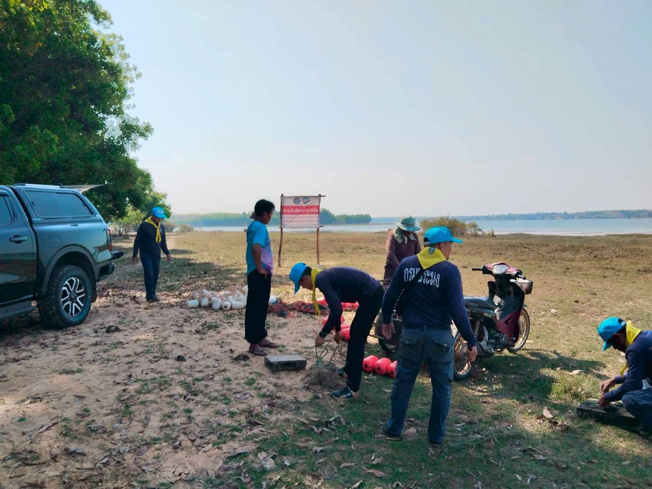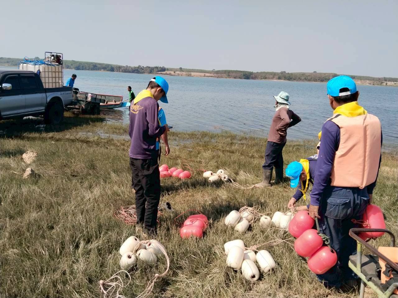 นายธีรวัฒน์ บุญส่งศรี หัวหน้าหน่วย ฯ มอบหมายให้เจ้าหน้าที่ดำเนินกิจกรรมจิตอาสาพัฒนาชุมชนประมง (1 ศูนย์ 1 หน่วย 1 ชุมชนประมงต้นแบบ) ครั้งที่ 7/2569 ร่วมกับผู้นำชุมชน ชปพ. ประมง และชาวบ้านแหลมทอง ดำเนินการแก้ไขซ่อมแซมทุ่นแนวเขตอนุรักษ์พันธุ์สัตว์น้ำบ้านแหลมทอง หมู่ที่ 2 ตำบลโนนก่อ อำเภอสิรินธร จังหวัดอุบลราชธานี เพื่อให้เกิดความชัดเจนและถูกต้องต่อไป
