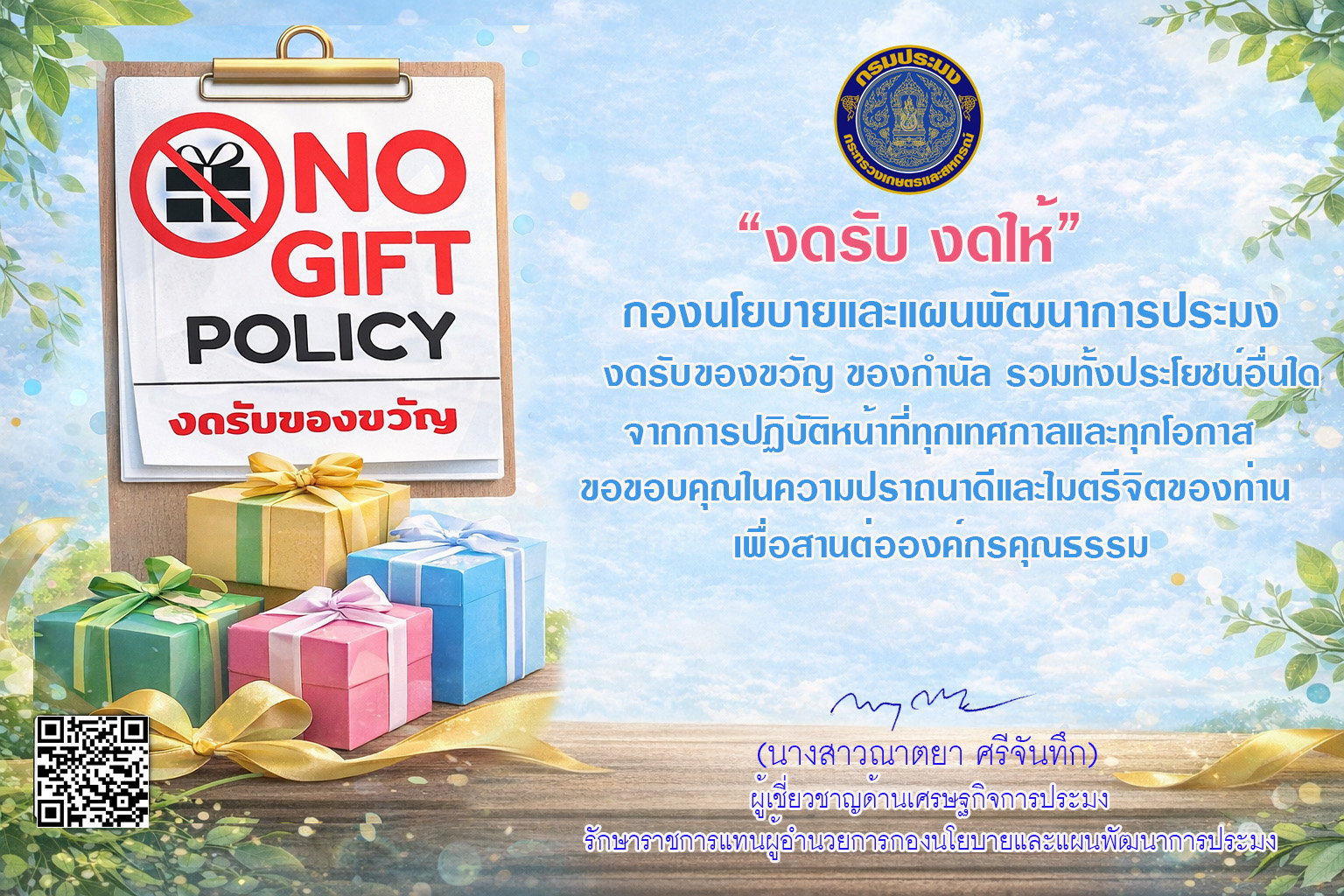 ไม่รับของขวัญหรือของกำนัลจากการปฏิบัติหน้าที่ ???
