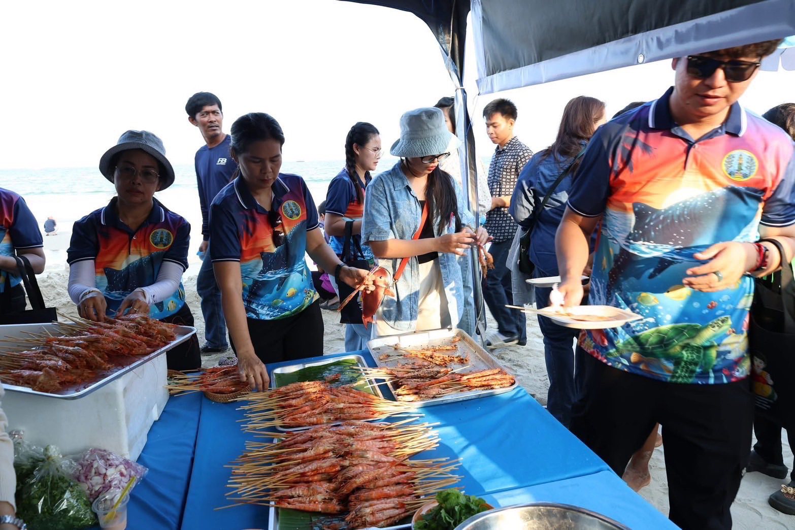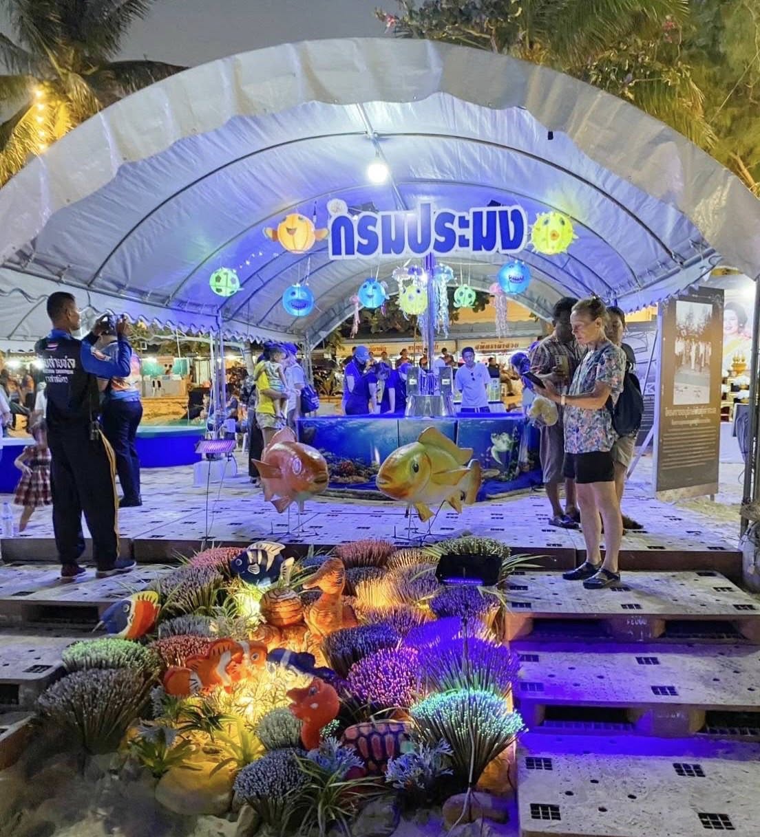 ???? โดยภายในงาน ศูนย์ฯ ได้ร่วมกับหน่วยงานของกรมประมงในพื้นที่ จัดนิทรรศการแสดงพันธุ์สัตว์ทะเลมีชีวิต ได้แก่ ปลาการ์ตูน ดาวทะเล หอยมือเสือ เม่นทะเล ปลิงทะเล ปลาสลิดคูปัง และปลาตะกรับหน้าแดง จัดกิจกรรมปล่อยพันธุ์ปลากะพงขาว 1,000 ตัว ปลาเก๋า จำนวน 3 ตัว และพันูธุ์ปูม้าที่ได้รับการสนับสนุนจากห้างหุ้นส่วนจำกัด อิ๊ฟอ๊าฟ จำนวน 20,000 ตัว และหอยตลับ จำนวน 50 กิโลกรัม เพื่อให้ประชาชนได้มีส่วนร่วมปล่อยพันธุ์สัตว์น้ำคืนสู่ธรรมชาติ และอีกหนึ่งกิจกรรมที่เป็นสีสันคือ “มหกรรมเปิดโลกทะเลกินฟรี” ที่หน่วยงานของกรมประมงได้ร่วมกันจัดทำเมนู “ลาบปลาหมอคางดำ และกุ้งอบเกลือ” แจกจ่ายให้แก่ประชาชนที่มาเที่ยวชมงานได้กินกันแบบฟรีๆ
