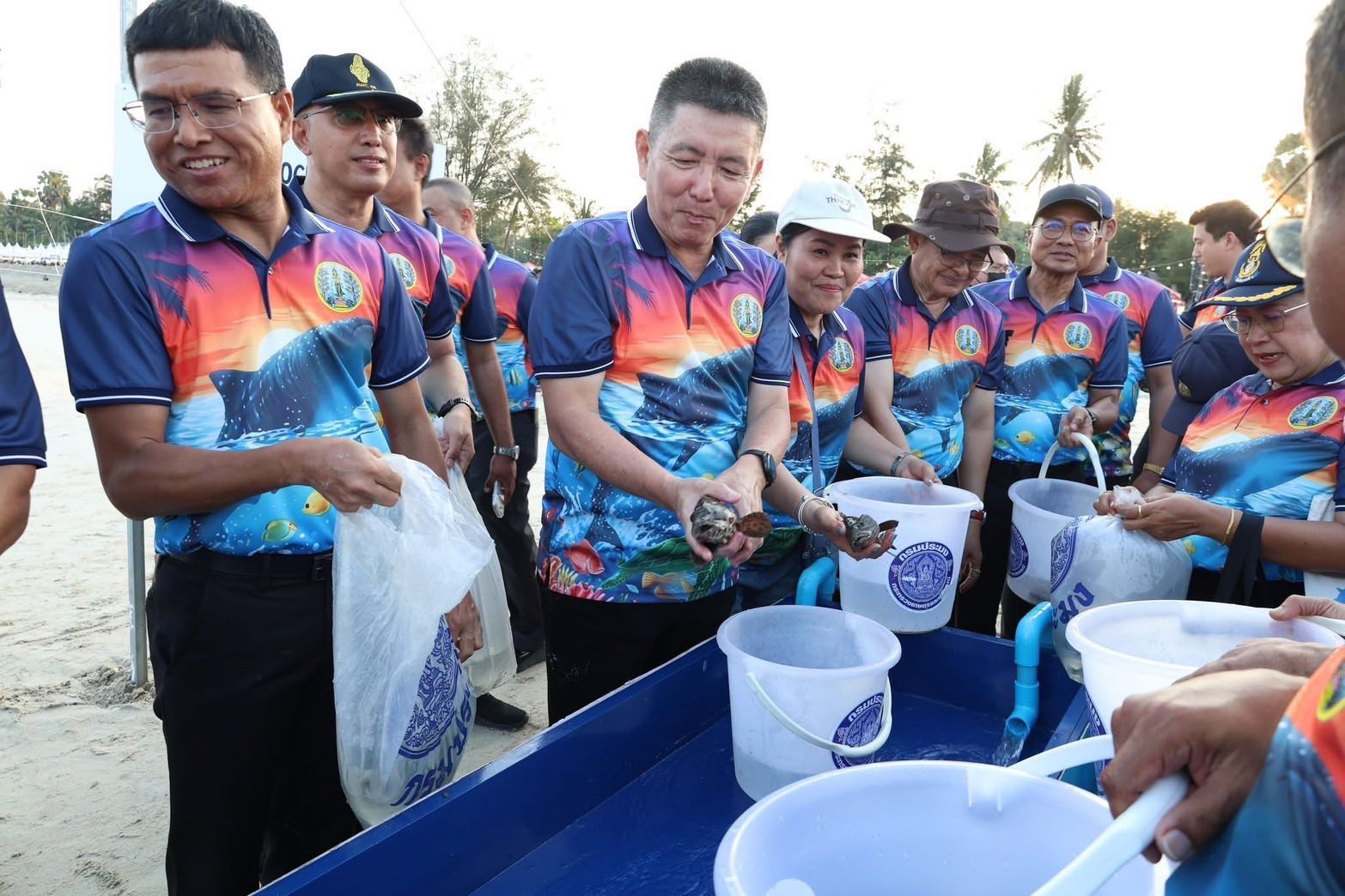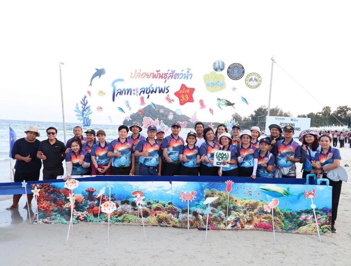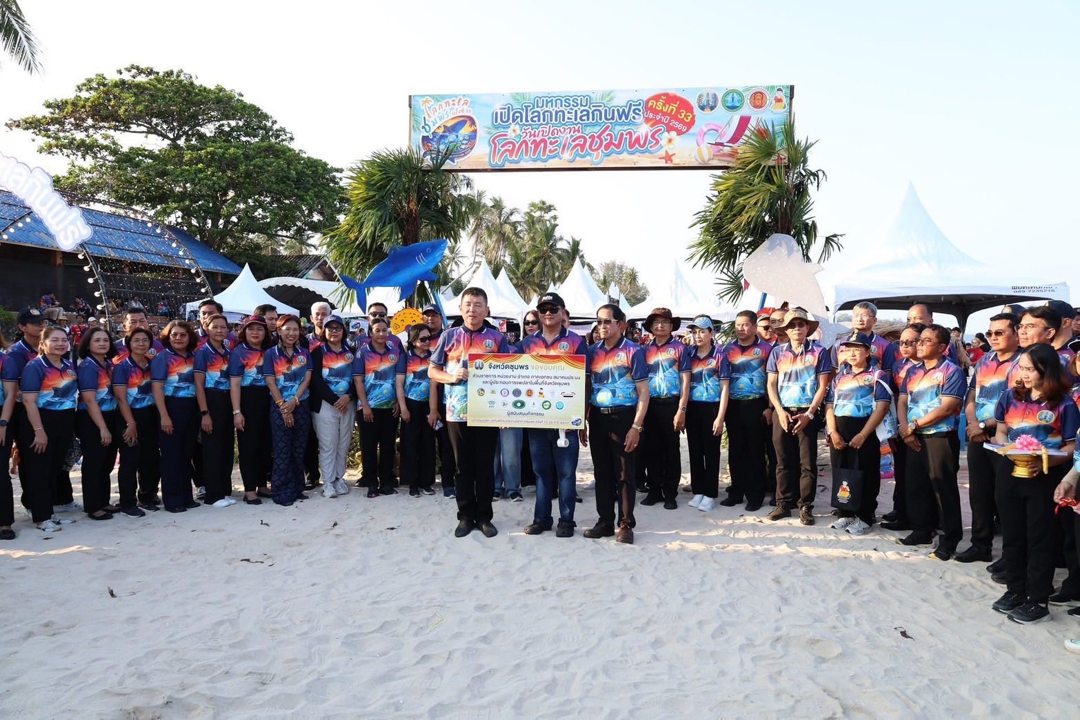 ?? ??วันที่ 25 มีนาคม 2569 นางสมพิศ แย้มเกษม ผู้อำนวยการศูนย์วิจัยและพัฒนาการเพาะเลี้ยงสัตว์น้ำชายฝั่งชุมพร พร้อมด้วยข้าราชการและพนักงานราชการ เข้าร่วมพิธีเปิดงานโลกทะเลชุมพร ครั้งที่ 33 ซึ่งจัดขึ้นระหว่างวันที่ 25-29 มีนาคม 2569 ณ บริเวณหาดทุ่งวัวแล่น ต.สะพลี อ.ปะทิว จ.ชุมพร โดยมี นายเธียรชัย ชูกิตติวิบูลย์ ผู้ว่าราชการจังหวัดชุมพร เป็นประธานในพิธี