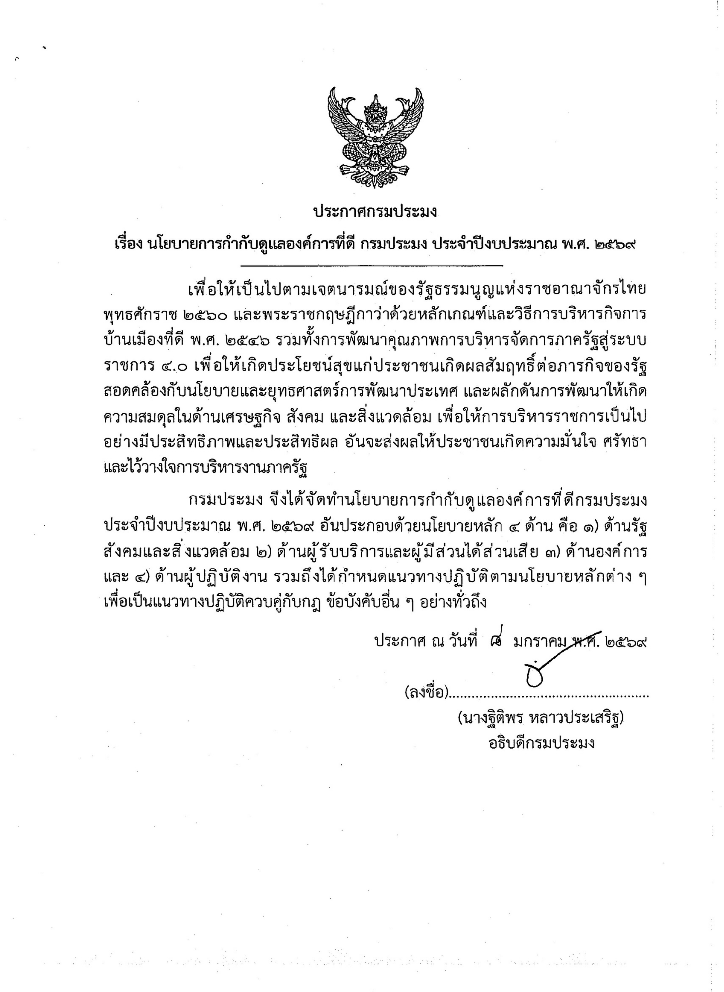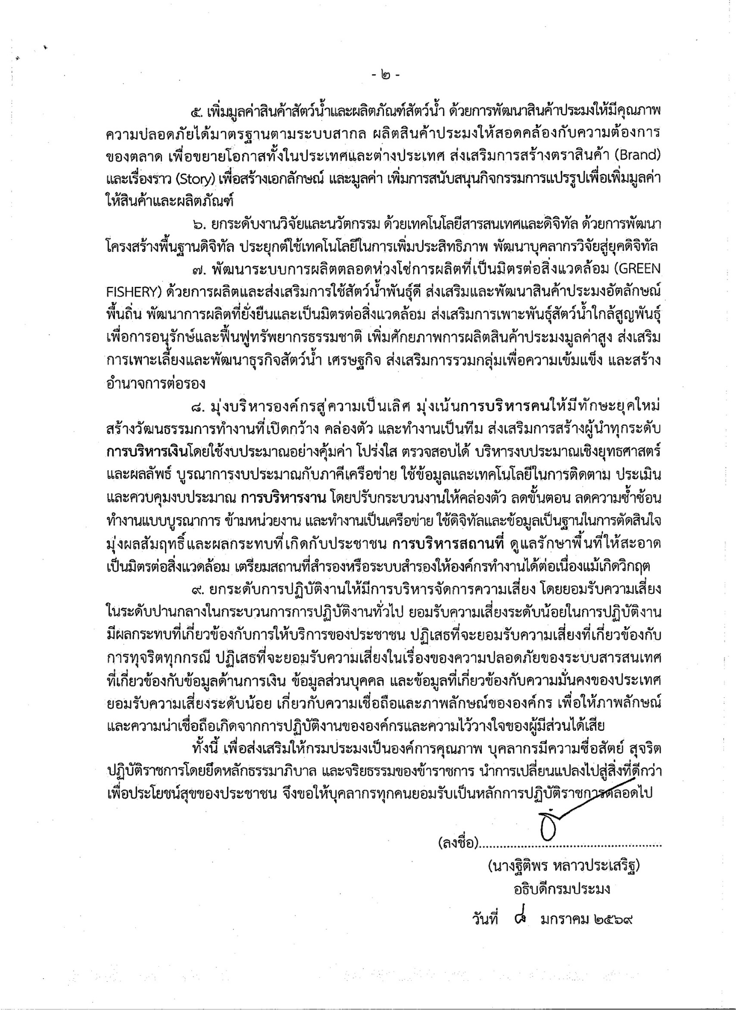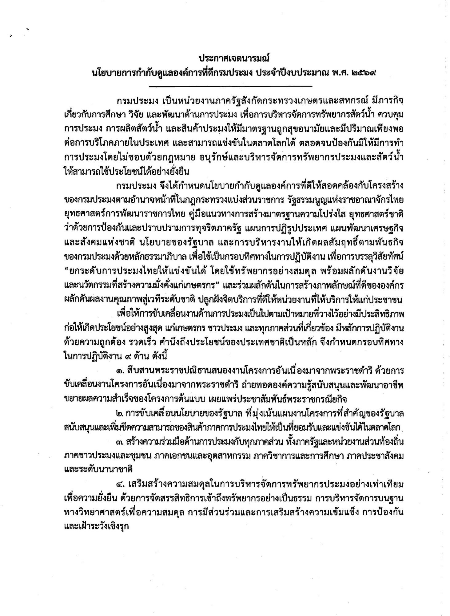 ประกาศนโยบายการกำกับดูแลองค์การที่ดี กรมประมง ประจำปีงบประมาณ พ.ศ. 2569