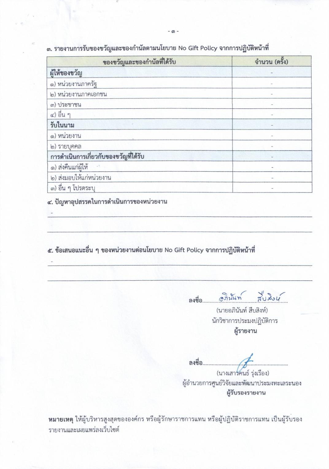 แบบสรุปรายงานตามนโยบาย No Gift Policy รอบที่ 2